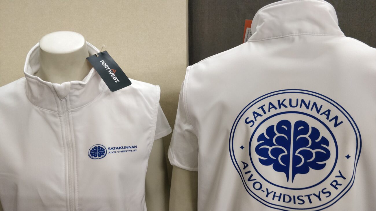 Satakunnan Aivo-yhdistys ry valitsi Portwest Print & Promo Softshell -liivit osaksi toimintansa näkyvyyttä. Liiveihin tehtiin painatukset DTF-siirtokuvatekniikalla sekä rintaan että selkään.
