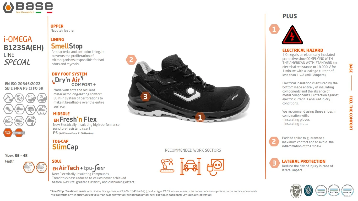 - EN ISO 20345:2022 SB E WPA PS CI FO SR