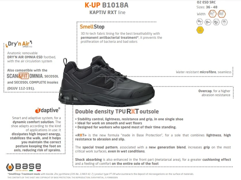 Dry’n Air -teknologialla varustetut hengittävät Base Protection -turvakengät "työntävät" kävellessä hien synnyttämän kosteuden ulos jalkineista parantaen sisäistä mikroilmastoa ja jalan hyvinvointia.