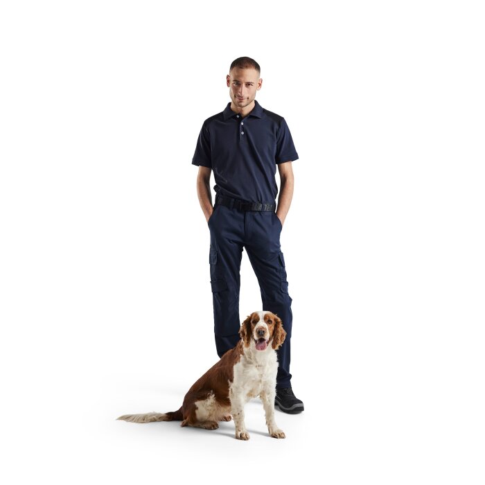 Blåkläderin uuteen teollisuusmallistoon kuuluvat housut stretch kankaasta, joka ei naarmuta ja kestää teollisuuspesun. Kangas on kahteen suuntaan joustava ja vyötäröllä on resori, joka antaa lisämukavuutta. Peitetyt ominaisuudet kuten mittatasku sisäpuolella ja etutaskut painonapeilla ja vetoketjullisella sisätaskulla tekevät housusta turvallisen, kun työskennellään herkästi naarmuuntuvien pintojen kanssa. Housussa on polvisuojataskut ulkopuolella. Heijastavat yksityiskohdat lisäävät näkyvyyttä.