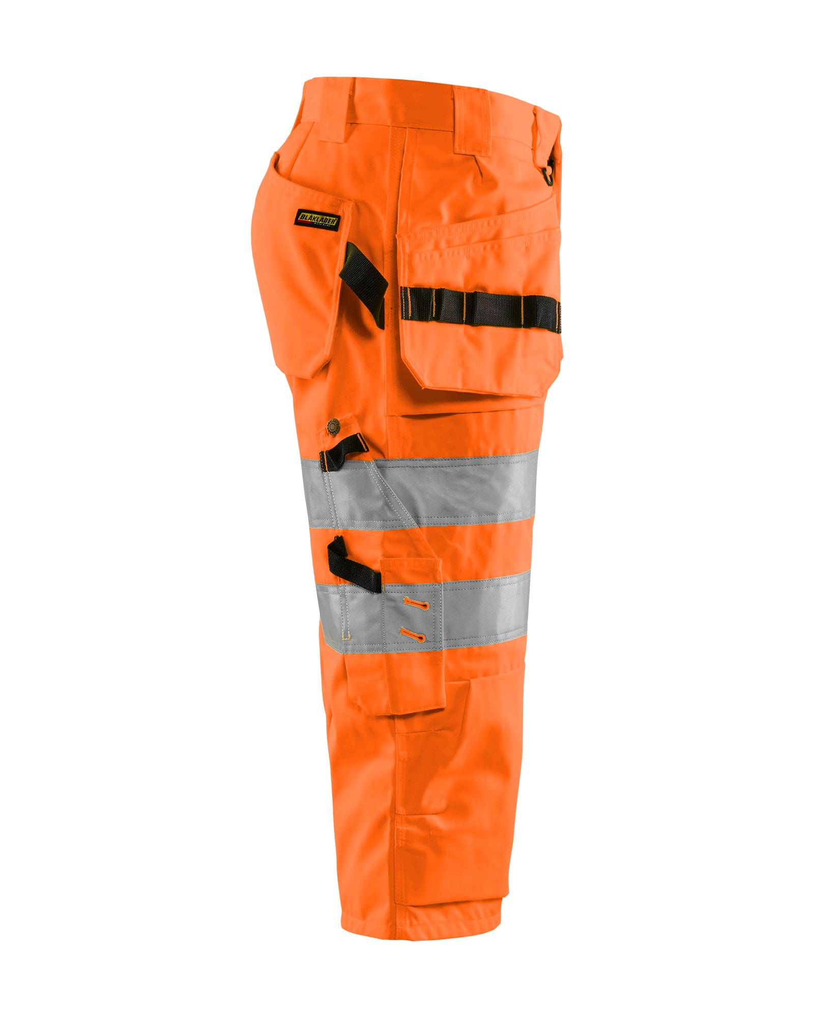 Huomioväriset piraattihousut CORDURA®vahvistetuilla polvisuojataskuilla. 3/4 -pituiset lahkeet ovat mukavan viileät kesällä ja lisäksi kangas on kevyttä ja viileää. Kaksi CORDURA® -vahvistettua paljetakataskua. Sertifioitu EN ISO 20471 luokka 2. Yhdistelmä sertifiointi X.