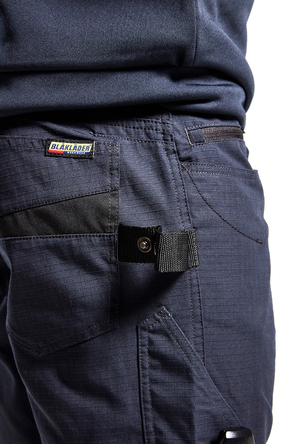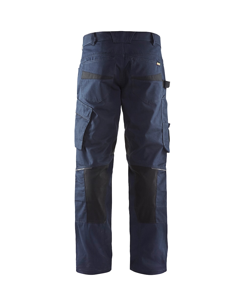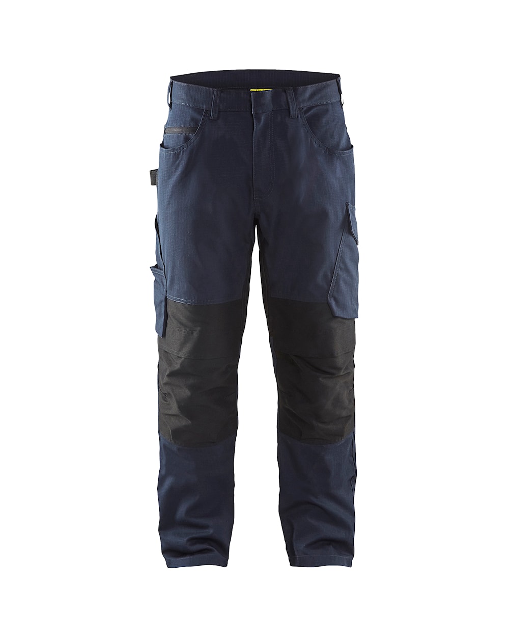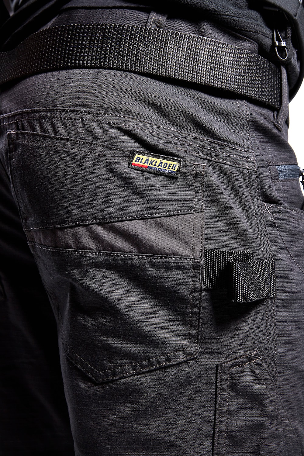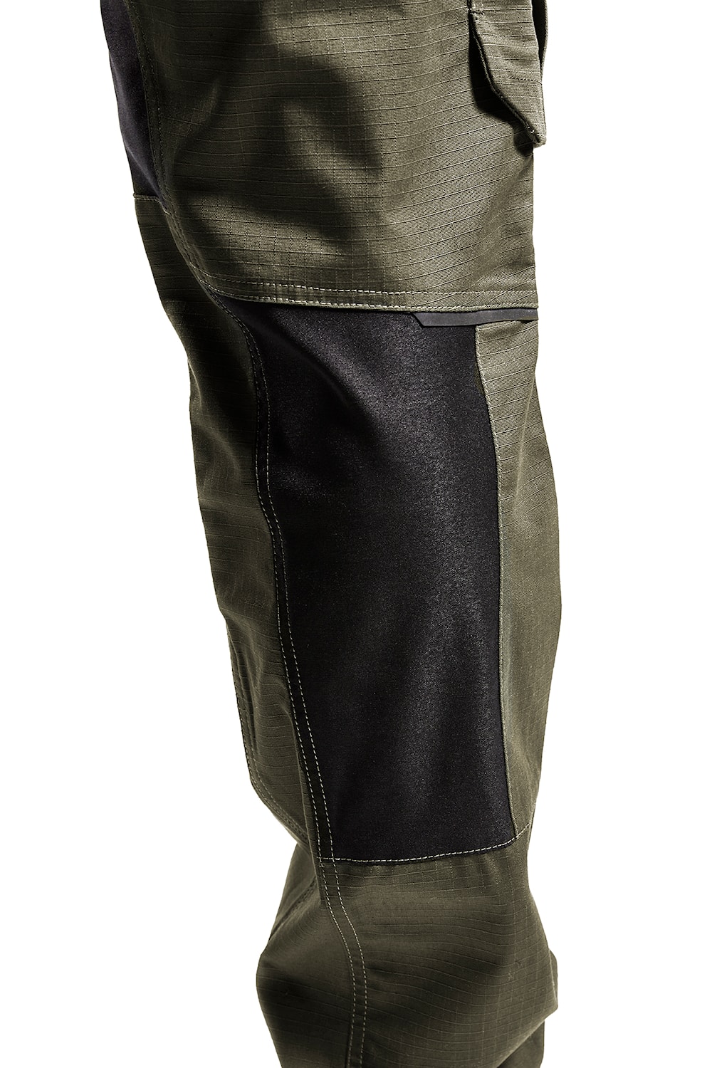 Kestävät ja toiminnalliset ripstop kankaiset Blåkläder joustohousut. Istuvuutta ja mukavuutta varten housuissa on joustavat kangasosiot pohkeissa ja reisien sisäosissa. CORDURA®-stretch polvisuojataskut, joihin polvisuojat asetetaan yläpuolelta. Fiksuja yksityiskohtia kuten pienet heijastimet, verkkokankainen puhelintasku, mittatasku ja käytännöllinen puukon pidike.
