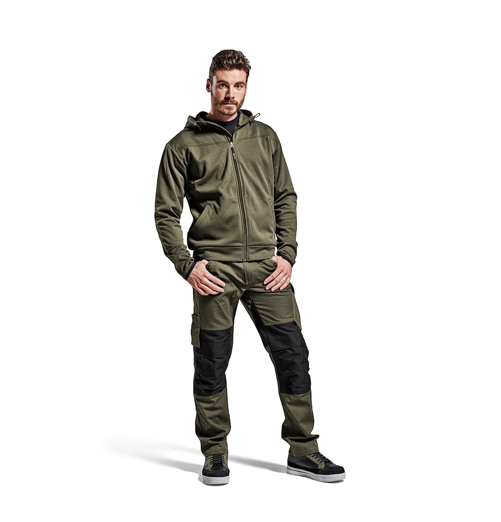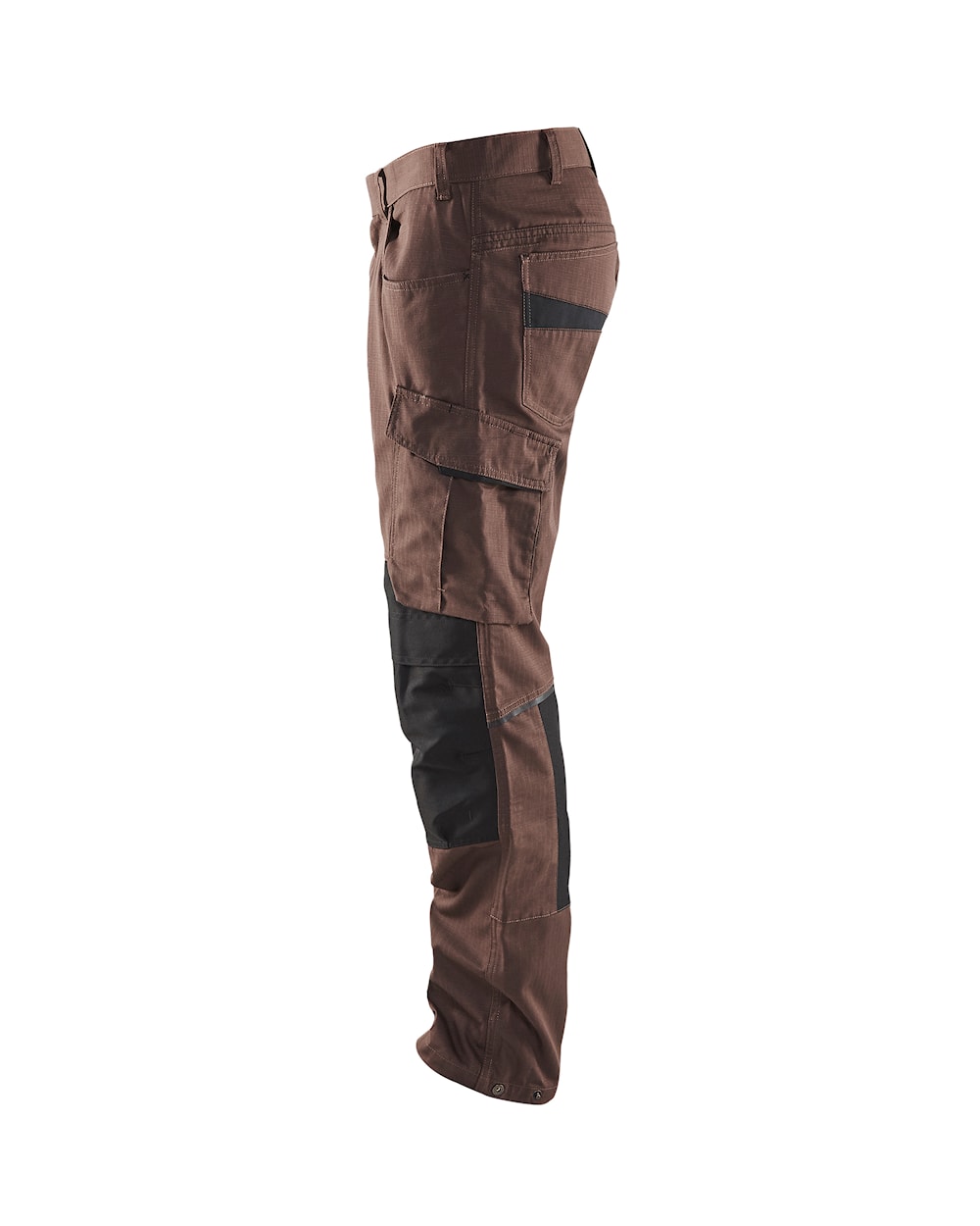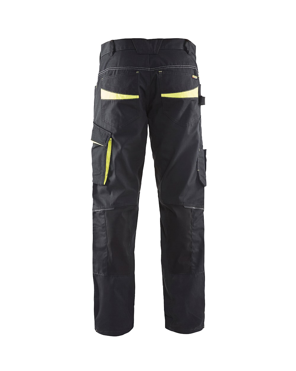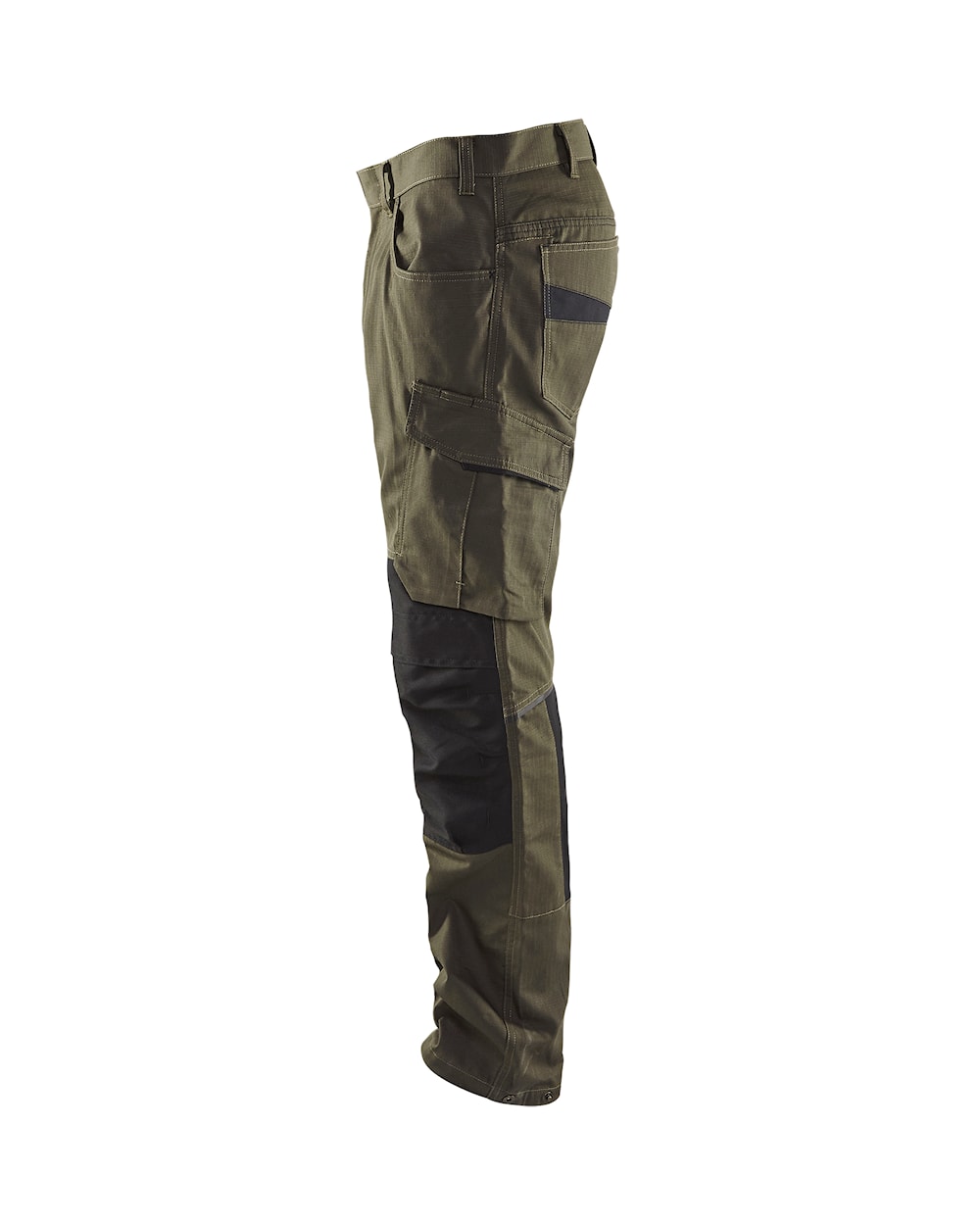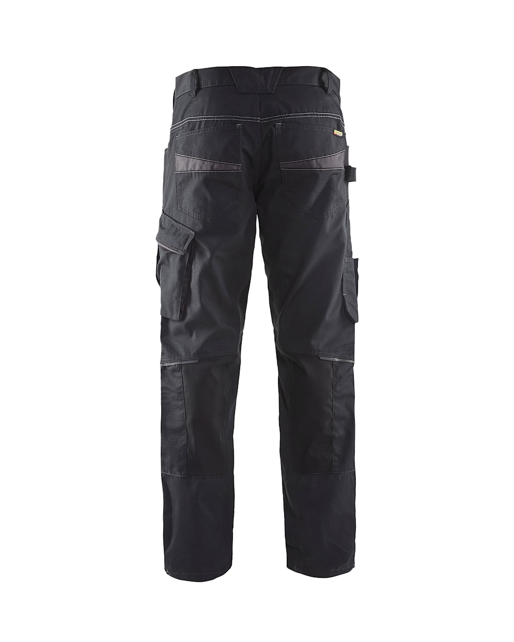 Kestävät ja toiminnalliset ripstop kankaiset Blåkläder joustohousut. Istuvuutta ja mukavuutta varten housuissa on joustavat kangasosiot pohkeissa ja reisien sisäosissa. CORDURA®-stretch polvisuojataskut, joihin polvisuojat asetetaan yläpuolelta. Fiksuja yksityiskohtia kuten pienet heijastimet, verkkokankainen puhelintasku, mittatasku ja käytännöllinen puukon pidike.