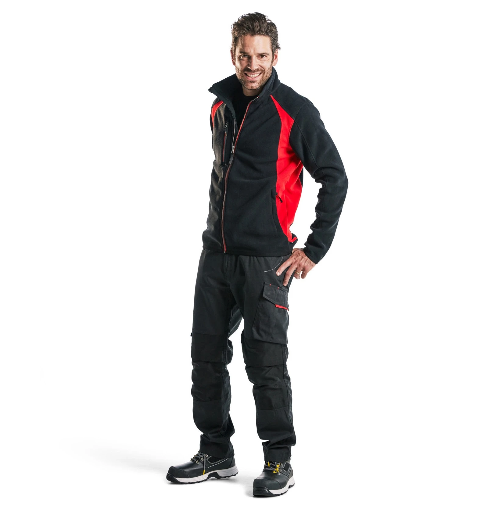 Kaksivärinen fleecepusero, jonka kangas on käsitelty nukkaantumista vastaan. Kaksi isoa vetoketjullista etutaskua, pidennetty selkäosa, heijastavat vetoketjut edessä sekä rintataskuissa.