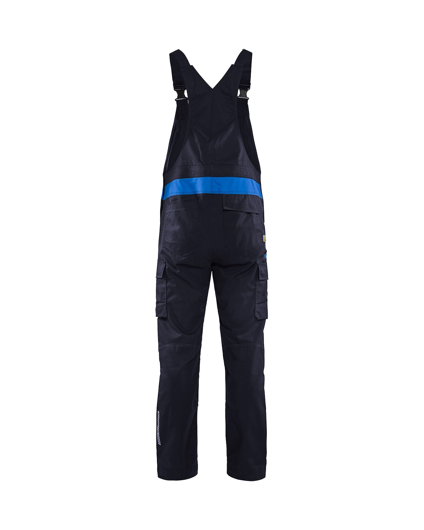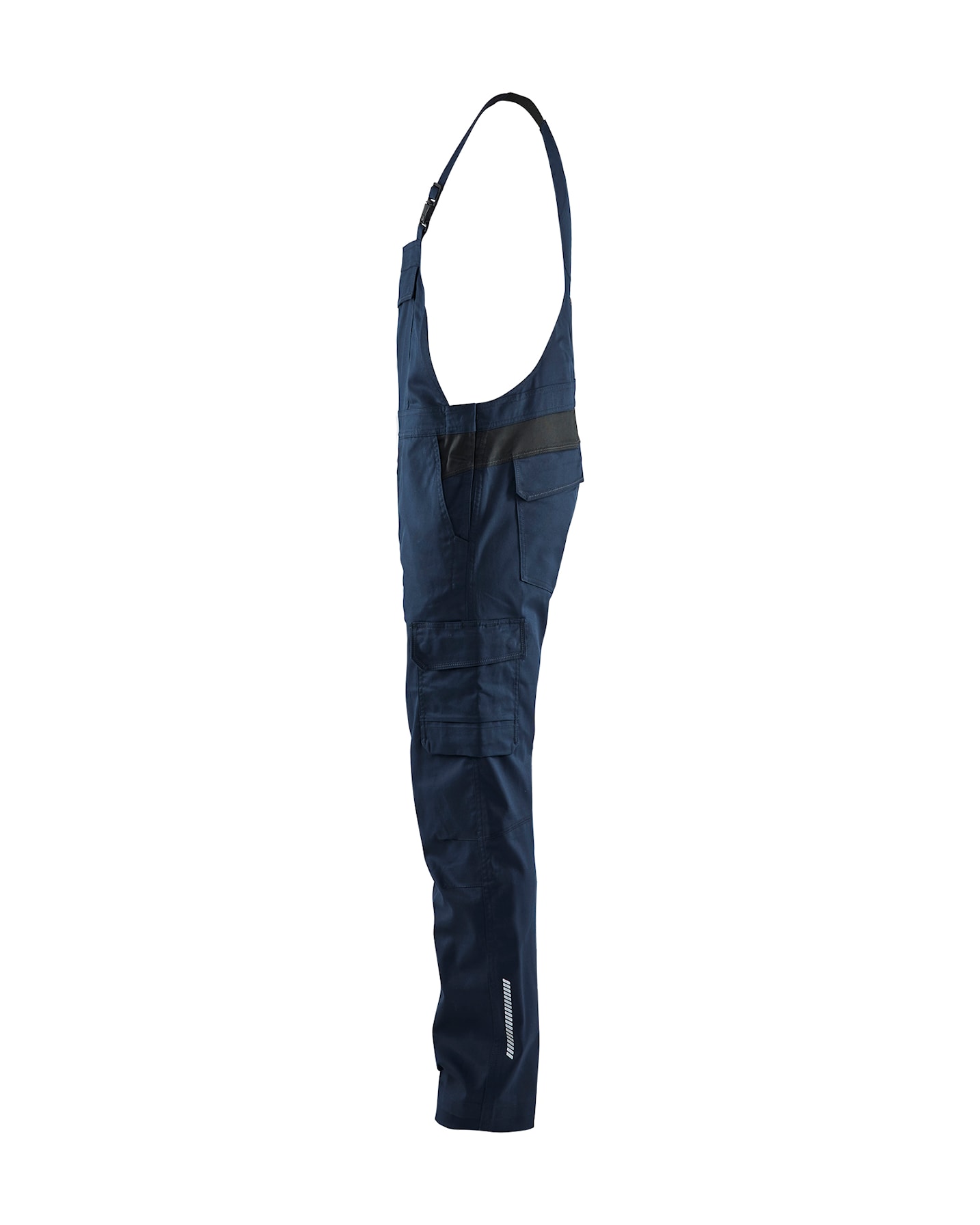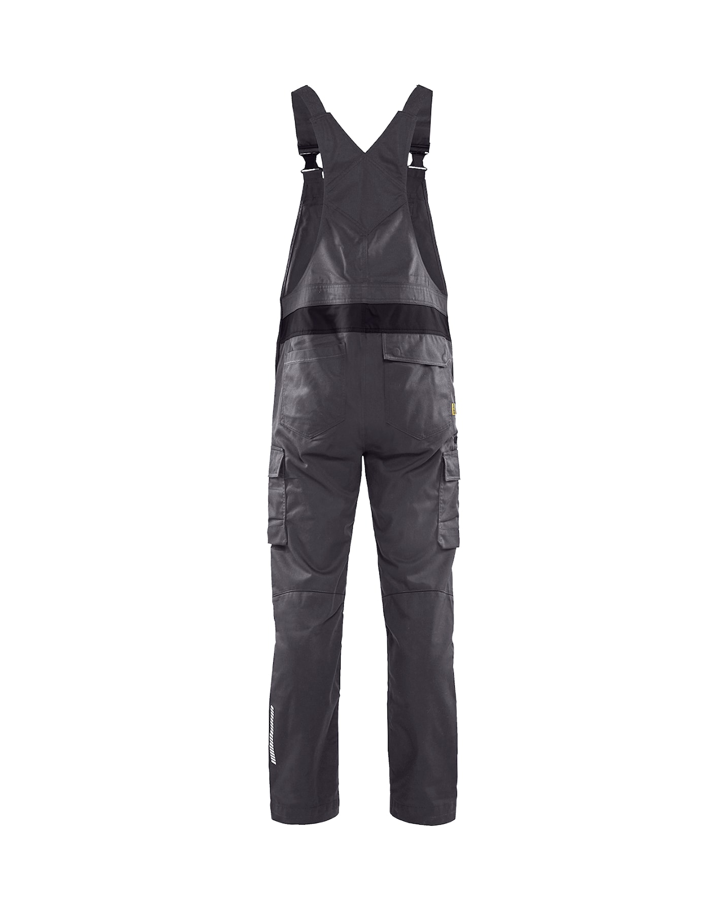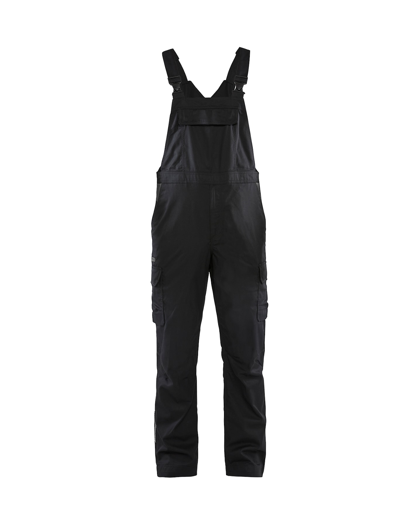 Blåkläderin uuteen teollisuusmallistoon kuuluva lappuhaalari, joka ei naarmuta ja kestää teollisuuspesun. Kangas on kahteen suuntaan joustava. Peitetyt yksityiskohdat kuten mittatasku sisäpuolella ja peitetyt painonapit tekevät haalarista turvallisen, kun työskennellään herkästi naarmuuntuvien pintojen kanssa. Heijastavat yksityiskohdat lisäävät näkyvyyttä.