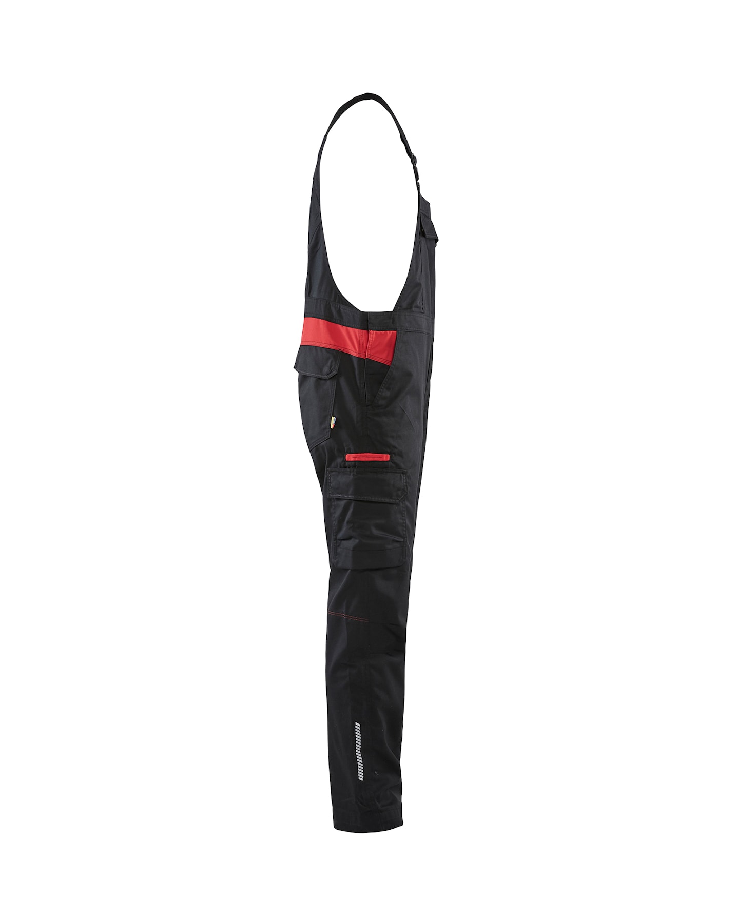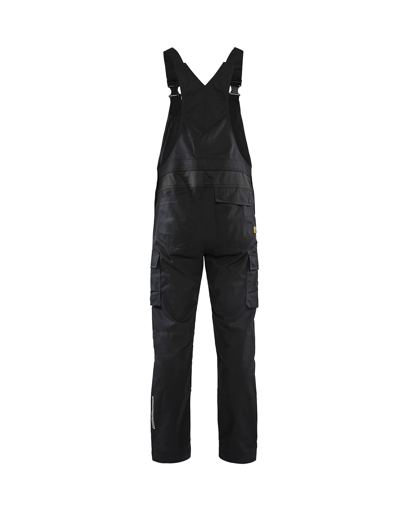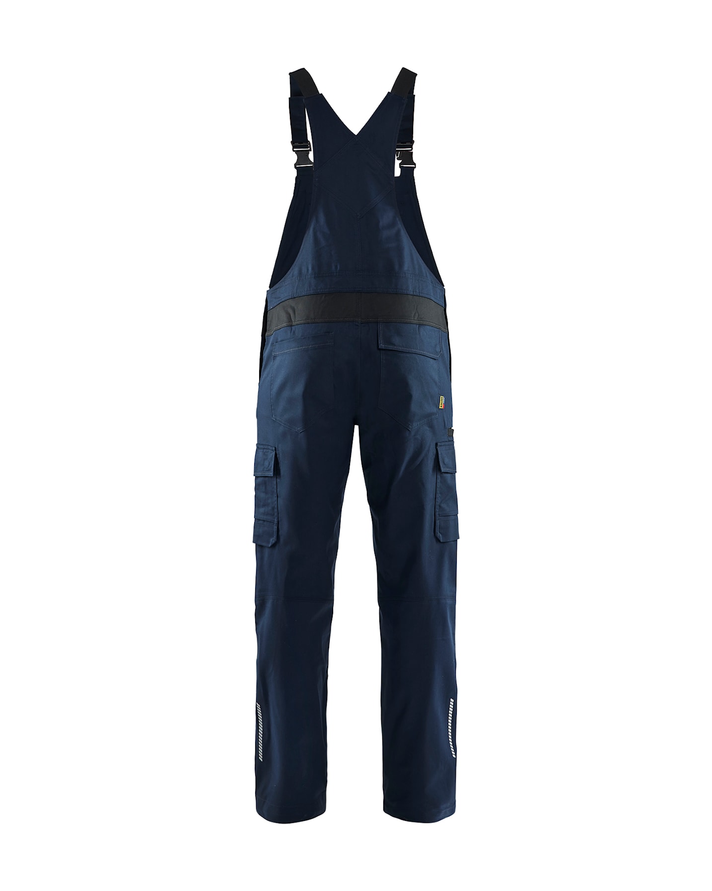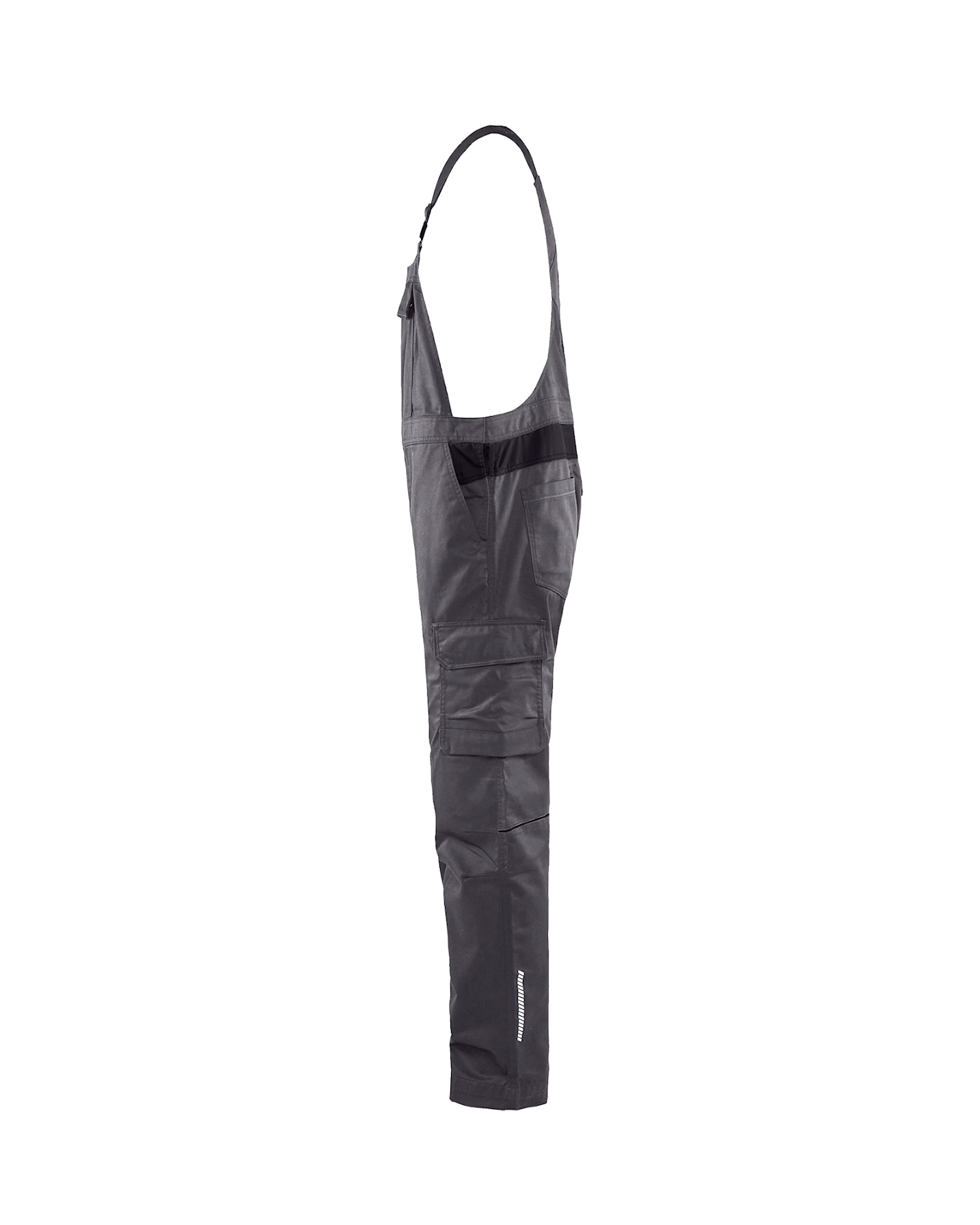 Blåkläderin uuteen teollisuusmallistoon kuuluva lappuhaalari, joka ei naarmuta ja kestää teollisuuspesun. Kangas on kahteen suuntaan joustava. Peitetyt yksityiskohdat kuten mittatasku sisäpuolella ja peitetyt painonapit tekevät haalarista turvallisen, kun työskennellään herkästi naarmuuntuvien pintojen kanssa. Heijastavat yksityiskohdat lisäävät näkyvyyttä.
