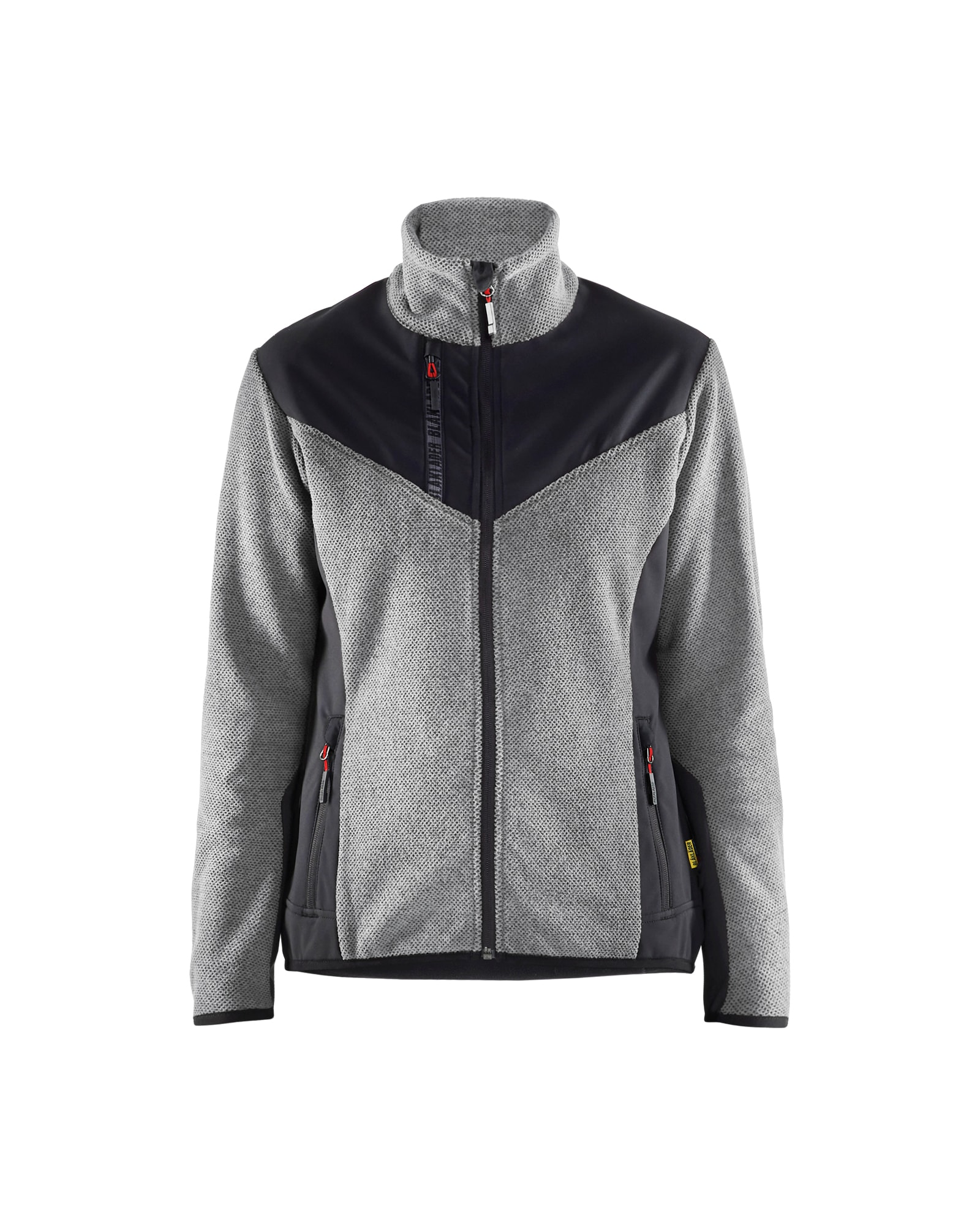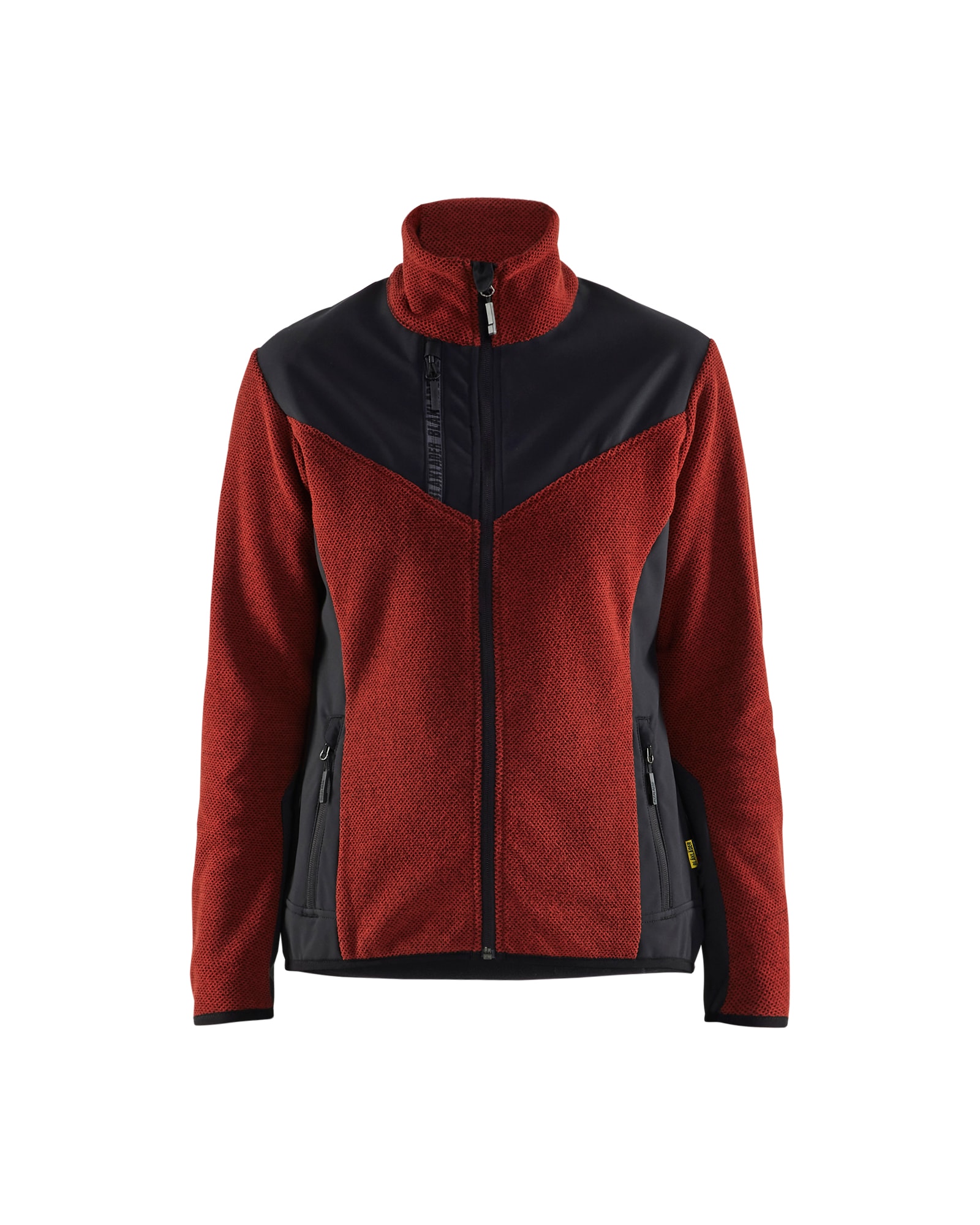 Blåkläder naisten neulottu softshelltakki nuorekkaalla ilmeellä ja mukavan tuntuisella fleecemateriaalilla. Kaksisuuntainen vetoketju edessä. Materiaali on kolmiulotteista fleeceä. Harjattu materiaali antaa takille makean ilmeen 3D -kuviolla ja on joustava, mukavan tuntuinen ja lämmin. Softshell -materiaali hihoissa, hartioilla ja selän alaosassa lisää kestävyyttä. Kainaloissa ei ole softshelliä, jotta hengittävyys olisi parempi. Takissa on paljon tilaa painatuksille ja sopii niin työhön kuin vapaa-ajalle.