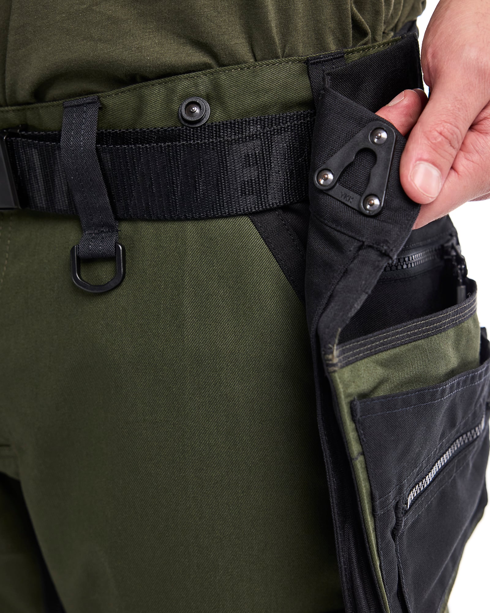 Kestävät riipputaskuhousut 2-suuntaan joustavasta CORDURA® Stretch Twill -materiaalista, joka tarjoaa erinomaisen kestävyyden ja mukavuuden. 4-suuntaan joustavat paneelit haaroissa, selkäosassa ja polvien takana takaavat optimaalisen liikkuvuuden. Housuissa on korkea vyötärö takana, irrotettavat riipputaskut ja kapenevat lahkeet. Polvien ja selkäosan tuuletus lisää mukavuutta. Kestävät polvisuojataskut CORDURA® Stretch Dobby -materiaalista.
