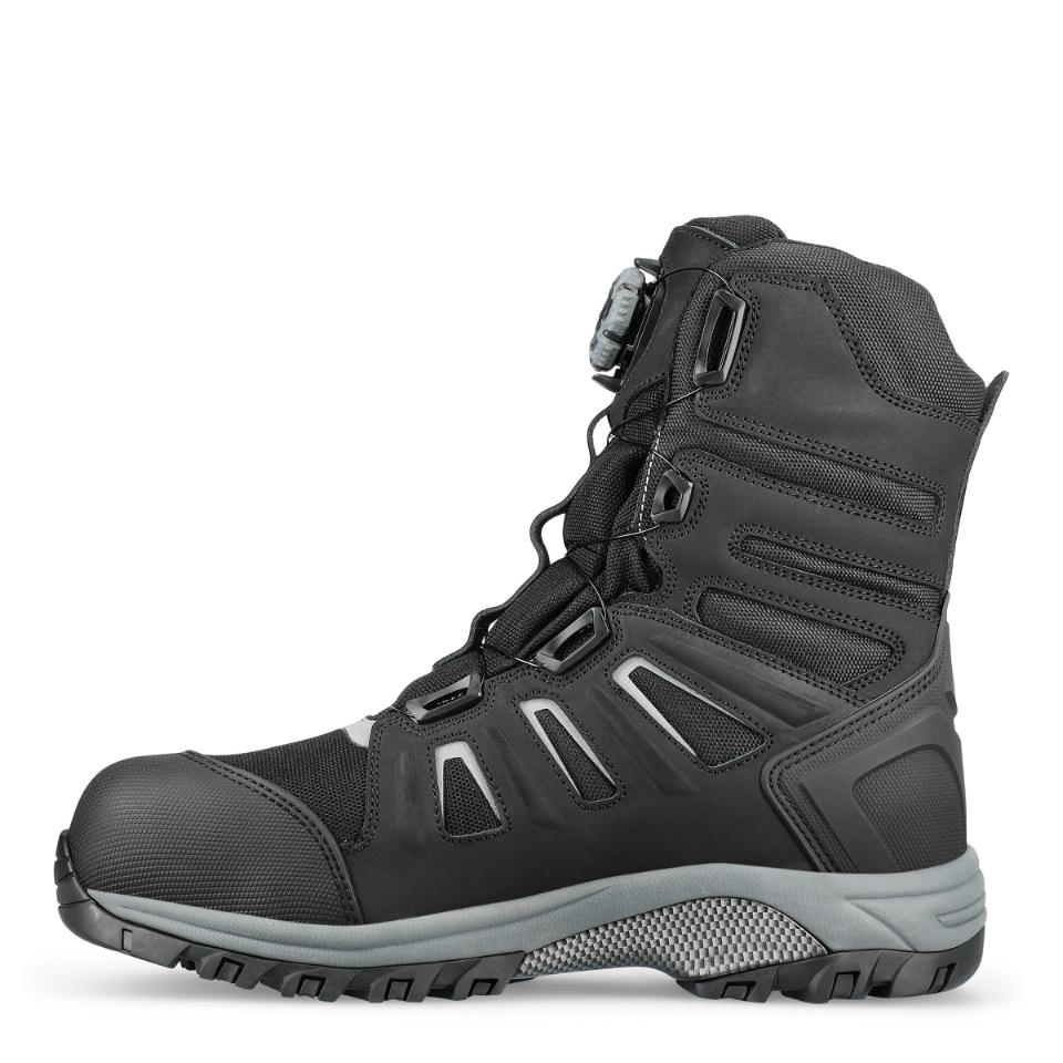 Lämmin, kestävä ja vakaa talviturvasaapas BOA® Fit System -kiristysjärjestelmällä, CE-sertifioitu uuden vuoden 2022 standardin mukaisesti. Kestävä nubukki ja joustava tekstiilipäällinen, jossa vedenpitävä B-dry-kalvo. Pehmeä plush-vuori, ja varren yläosassa sisäpuolella verkkokangas hengittävyyden varmistamiseksi. Vahva, pitävä ja liukastumista ehkäisevä kuminen ulkopohja sekä iskunvaimentava EVA-välipohja. Jalkaholvin kohdalla oleva stabilisaattori pitää jalan vakaana myös epätasaisessa maastossa. Sisäpohja on iskunvaimentava, hengittävä ja kosteutta siirtävä, ja se on valmistettu kierrätysmateriaaleista (upcycled) sisältäen PU-vaahtoa ja Memory Foam -materiaalia. Varustettu TPU ProNose -vahvikkeella, suljetulla kielekkeellä, heijastavilla yksityiskohdilla ja PVC-vapaana. Saatavana koosta 36 alkaen.