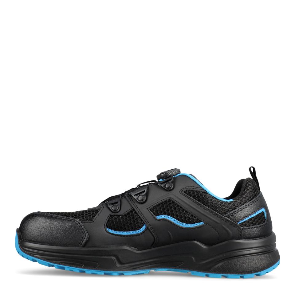 Joustava, kevyt ja kestävä turvakenkä BOA® Fit System -kiristysjärjestelmällä. Valmistettu nopeasti kuivuvasta ja hengittävästä mikrokuidun, nupukin, tekstiilin ja verkkomateriaalin yhdistelmästä. Erittäin pitävä ja iskuja vaimentava PU/kumipohja takaa erinomaisen pidon. Pehmeä, hengittävä ja iskuja vaimentava sisäpohja lisää käyttömukavuutta ja vähentää kuormitusta nivelissä, jaloissa ja selässä. Hengittävä vuori on vahvistettu kantapäästä. ESD-hyväksytty ja PVC-vapaa.