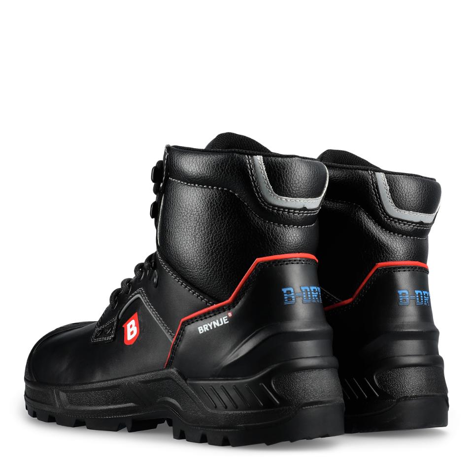 BRYNJE B-Dry -turvasaapas on extra durable valinta raskaaseen teollisuuteen ja rakentamiseen. Hengittävä pintanahka ja vedenpitävä, hengittävä kalvo pitävät jalat kuivina. S3- ja HRO-luokiteltu PU/nitriilikumipohja kestää 300 °C, vaimentaa iskuja ja ehkäisee liukastumista. Vakauttava lenkkirauta, ProNose ja ESD-hyväksyntä lisäävät turvallisuutta ja käyttöikää.