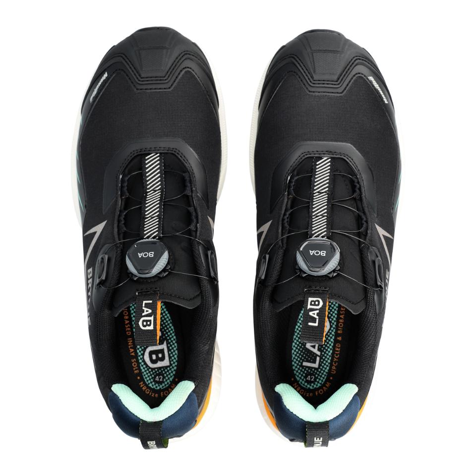 BRYNJE LAB Microfiber on sneaker-tyylinen S3S-turvakenkä, jossa yhdistyvät energianpalautus ja kestävyys. Vettä hylkivä mikrokuitupäällinen (30 % kierrätetty) ja BOA® Fit System takaavat nopean, tarkan istuvuuden. NRGize Foam, EVA-välipohja ja liukastumista ehkäisevä kumipohja parantavat mukavuutta. NanoToe™-varvassuoja ja kevlar-välipohja suojaavat työmaalla. ESD, PVC-vapaa, EN ISO 20345:2022.