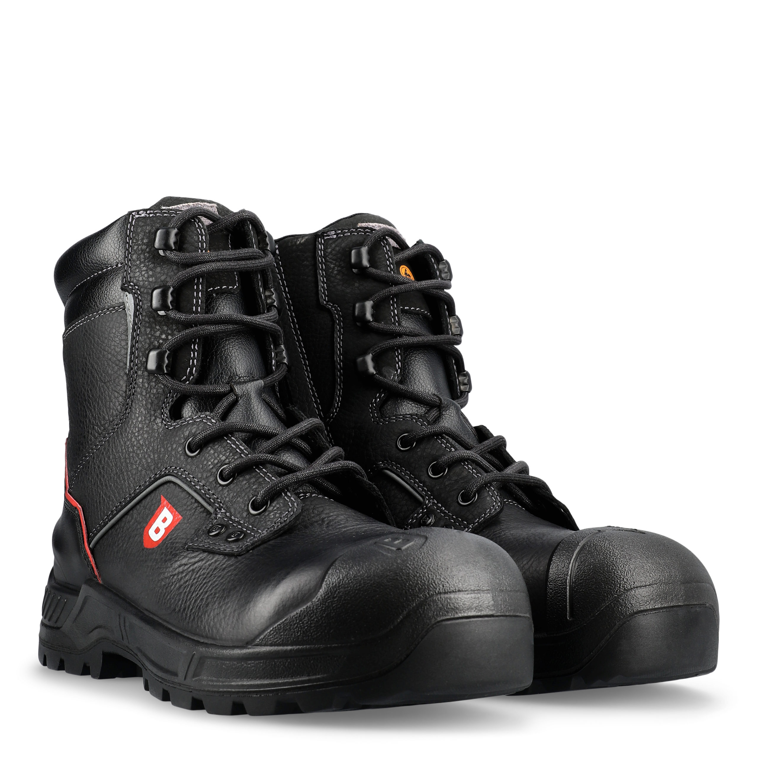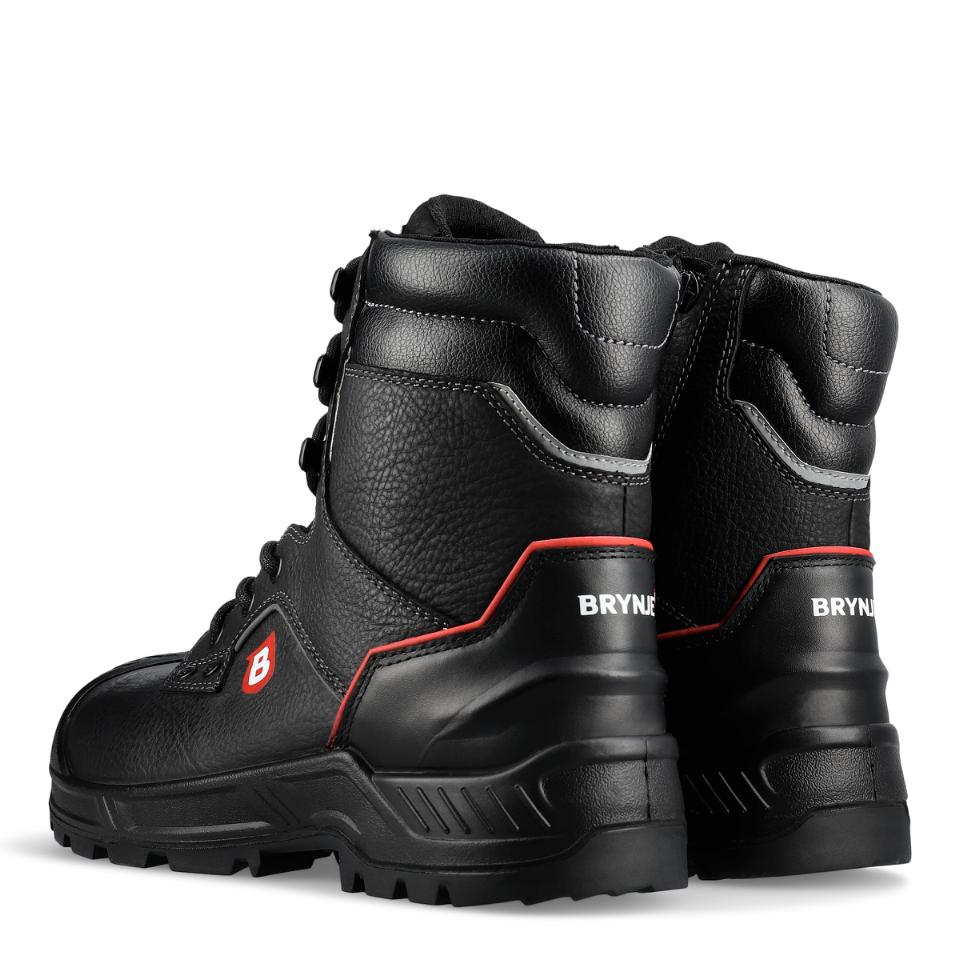 BRYNJE Supporter on leveälestinen turvajalkine vaativaan työhön: Thinsulate™-vuori tuo lämpöä, ja B-Xtreme-nahka on hengittävä sekä vettähylkivä. PU/nitriilikumipohja vaimentaa iskuja, pitää hyvin ja kestää jopa 300 °C (HRO). Vakauttava shank ehkäisee kiertymistä, ProNose lisää kestävyyttä ja ESD-ominaisuus vähentää staattista sähköä. EN ISO 20345:2022, S3S.