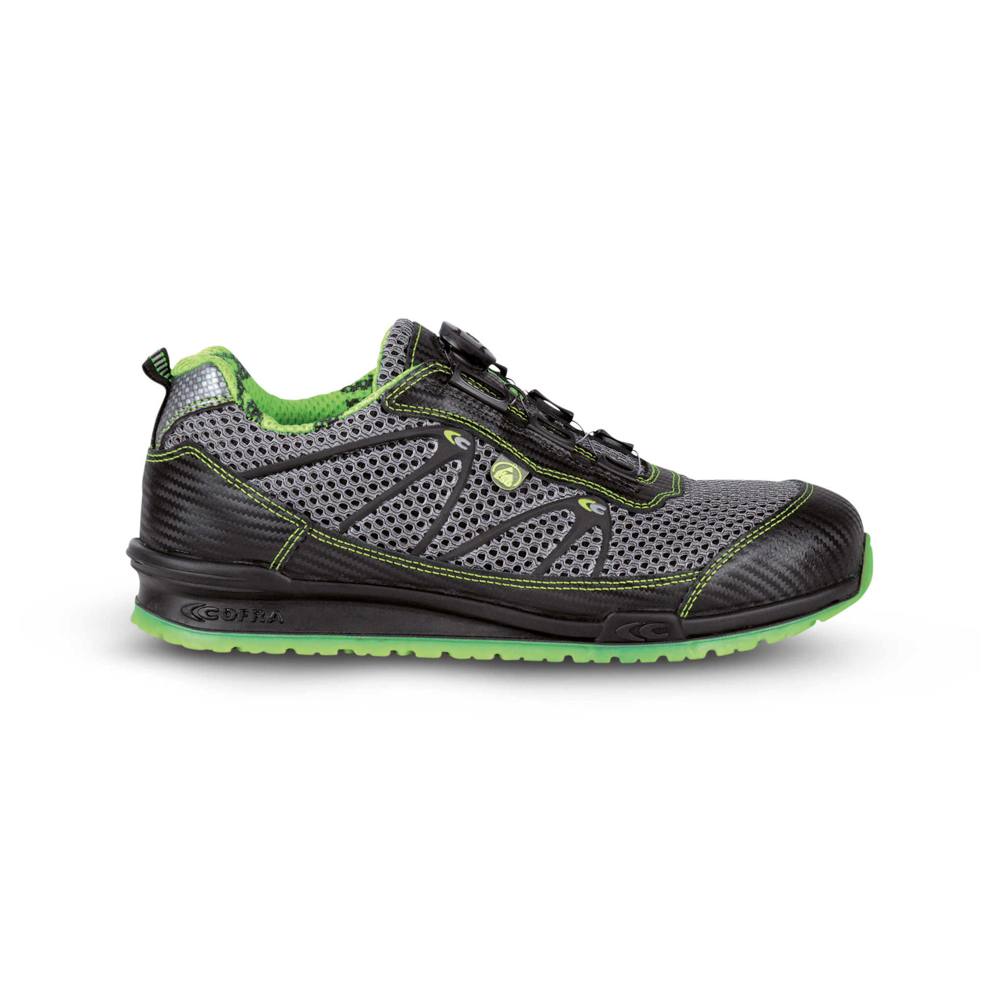 Tyylikäs Cofra Potency Turvakenkä hyvin hengittävää tekstiiliä, joka pitää lämpötilan miellyttävänä kengässä. Käytännöllinen BOA-kiinnitysmekanismi. Sisäpuoli hengittävää SANY-DRY-materiaalia, joka siirtää kosteutta. Alumiininen varvassuoja ja tekstiilinen APT-naulaanastumissuoja ovat erittäin kevyet ja joustavat. Tämä tekee kengästä kevyen ja mukavan. Cofra-Soft-pohjallinen tuntuu mukavalta ja siirtää kosteutta pois Jalasta. PU/TPU-ulkopohja. Pehmeä PU vaimentaa iskuja ja TPU takaa hyvän pidon ja kestävyyden. ESD.