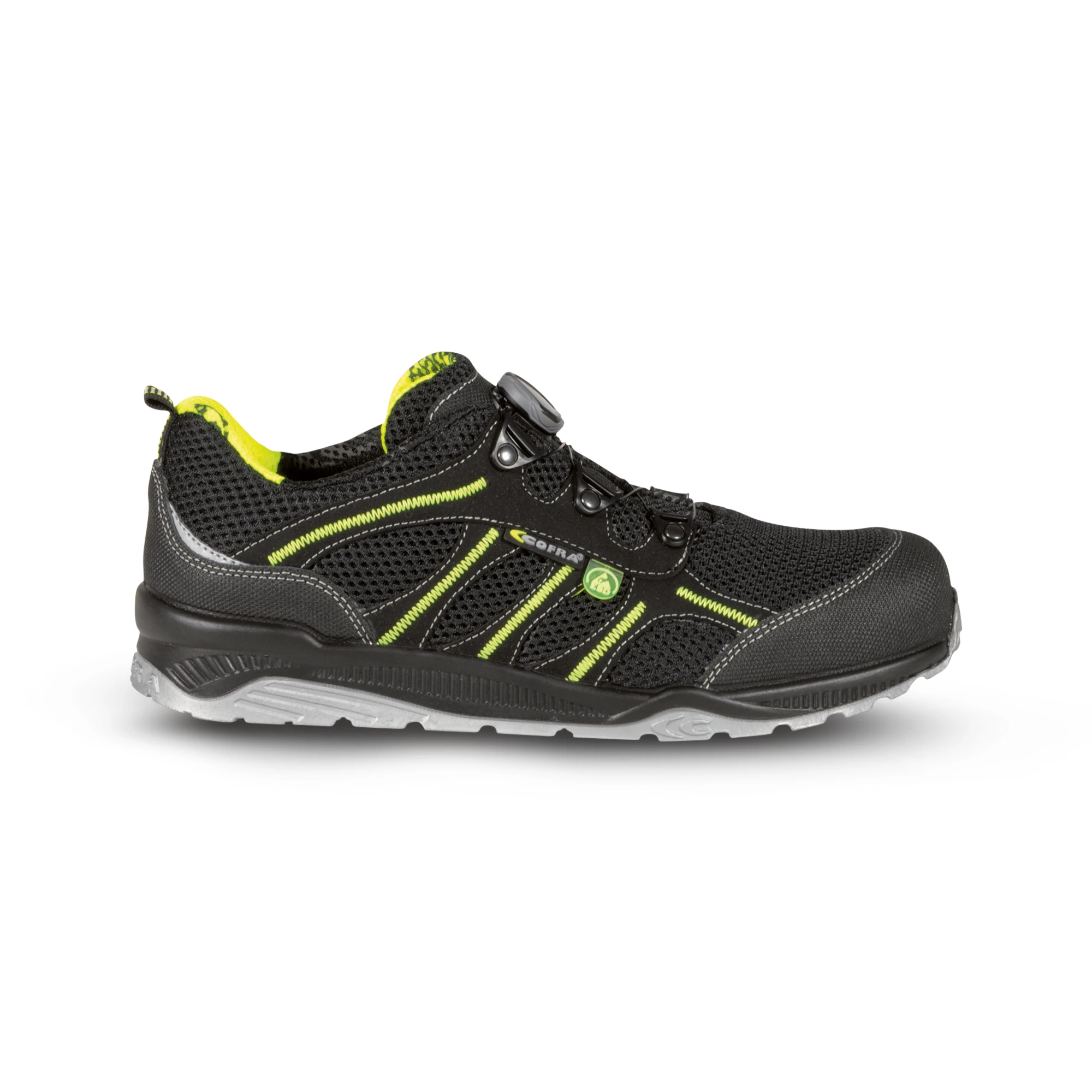Moderni Cofra Stack Turvakenkä hyvin istuvaa ja hengittävää tekstiiliä, joka pitää lämpötilan miellyttävänä kengässä. Käytännöllinen BOA-kiinnitysmekanismi. Sisäpuoli hengittävää SANY-DRY-materiaalia, joka siirtää kosteutta. Alumiininen varvassuoja ja tekstiilinen APT-naulaanastumissuoja ovat erittäin kevyet ja joustavat. Tämä tekee kengästä kevyen ja mukavan. MEMORY PLUS -pohjallinen muovautuu jalan mukaan ja takaa hyvän mukavuuden ja hengittävyyden. PU/TPU-ulkopohja. Pehmeä PU vaimentaa iskuja ja TPU takaa hyvän pidon ja kestävyyden. ESD.