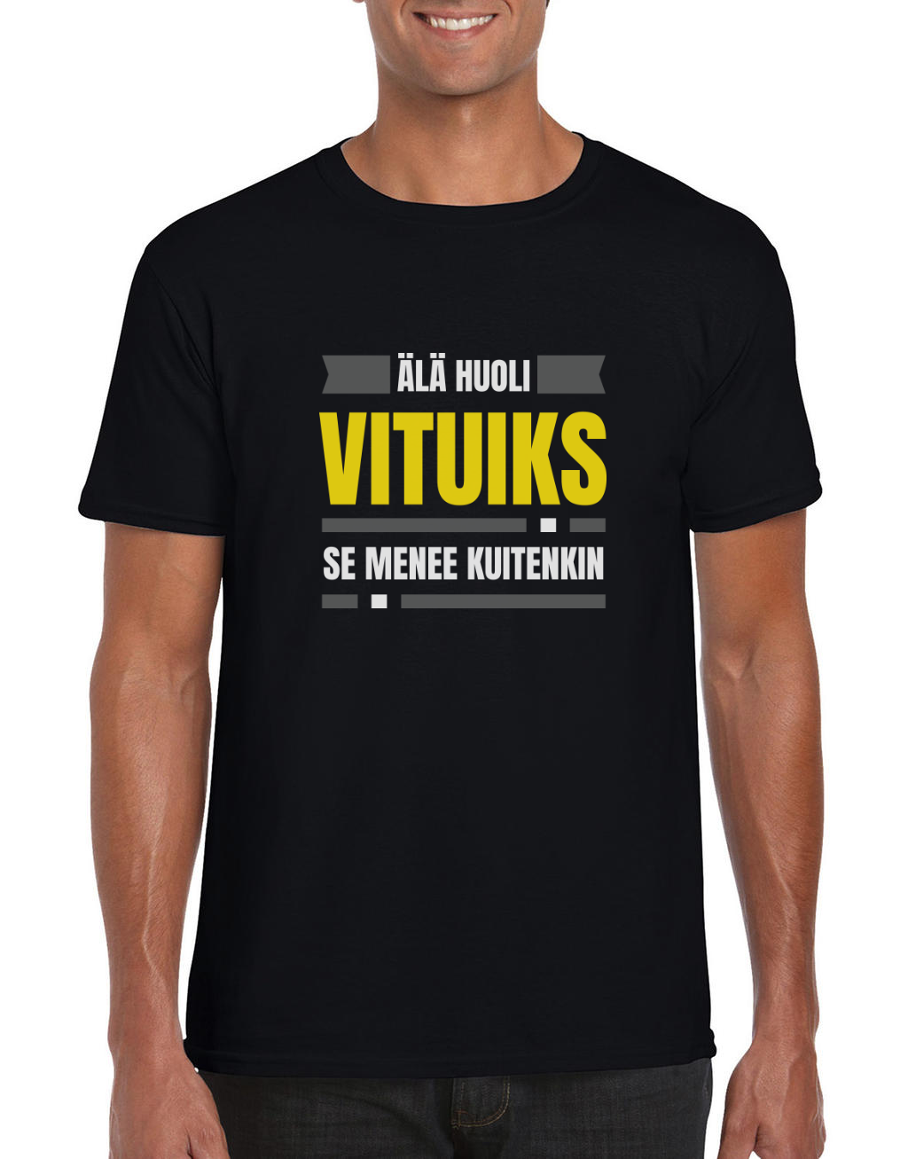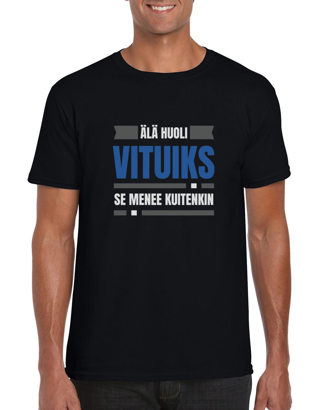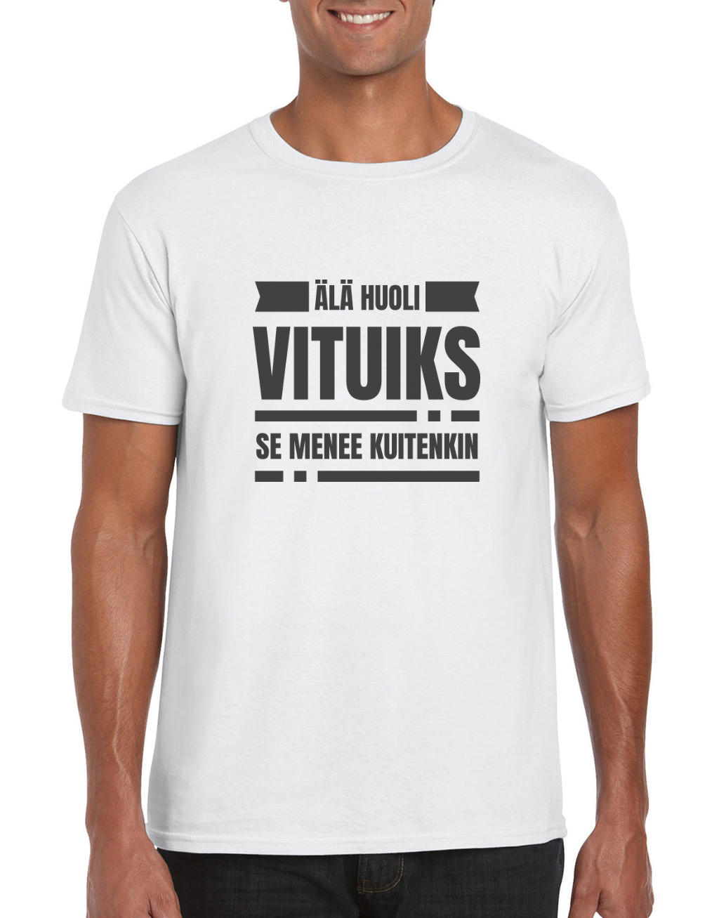 Huumoripaita Älä huoli vituiks se menee kuitenkin – T-paita