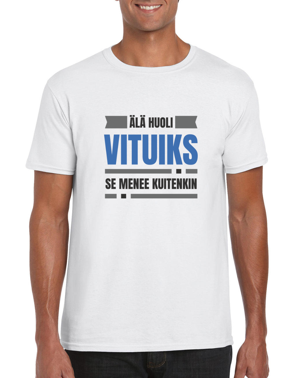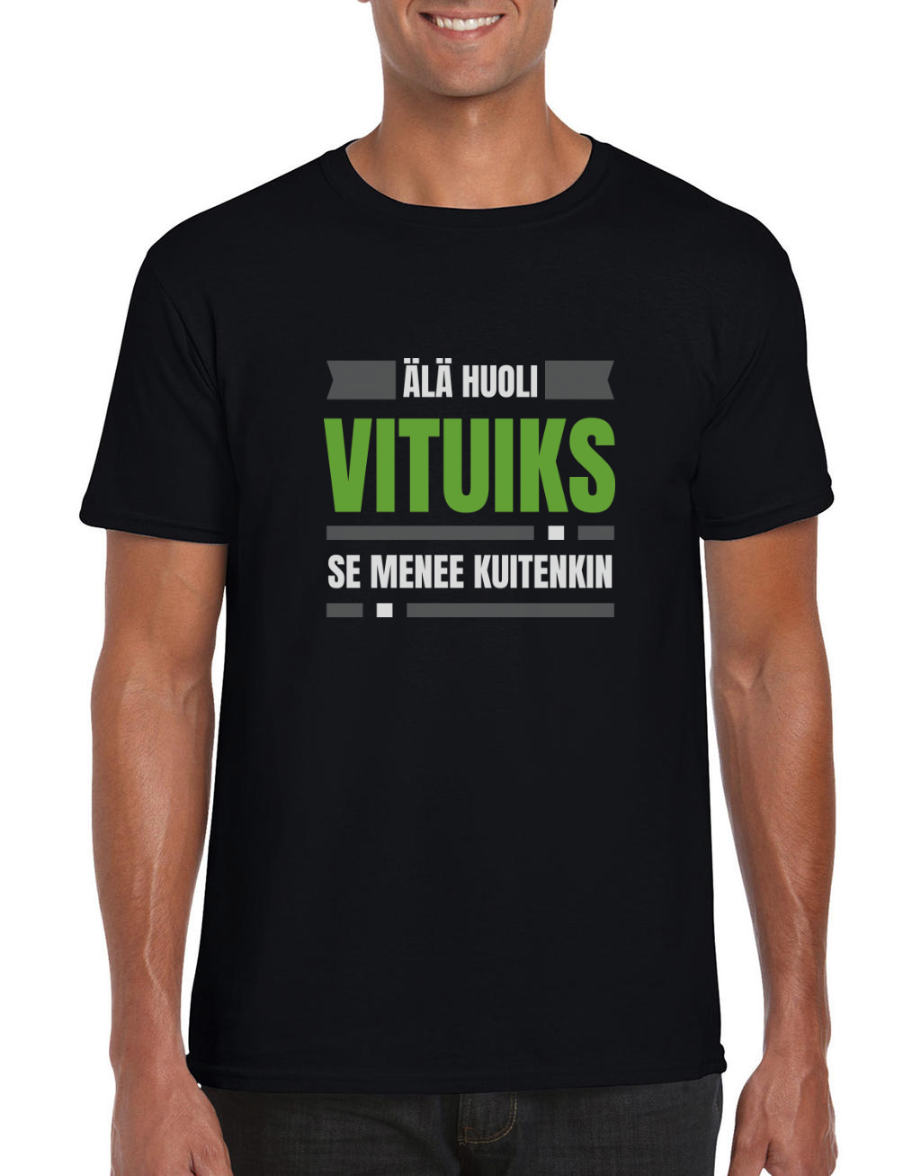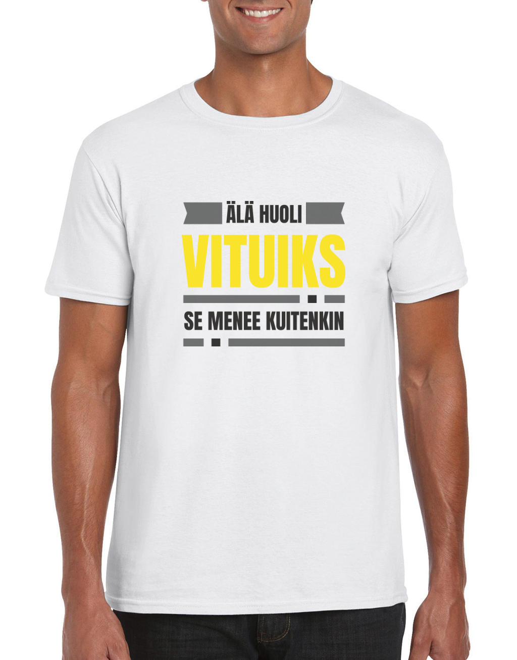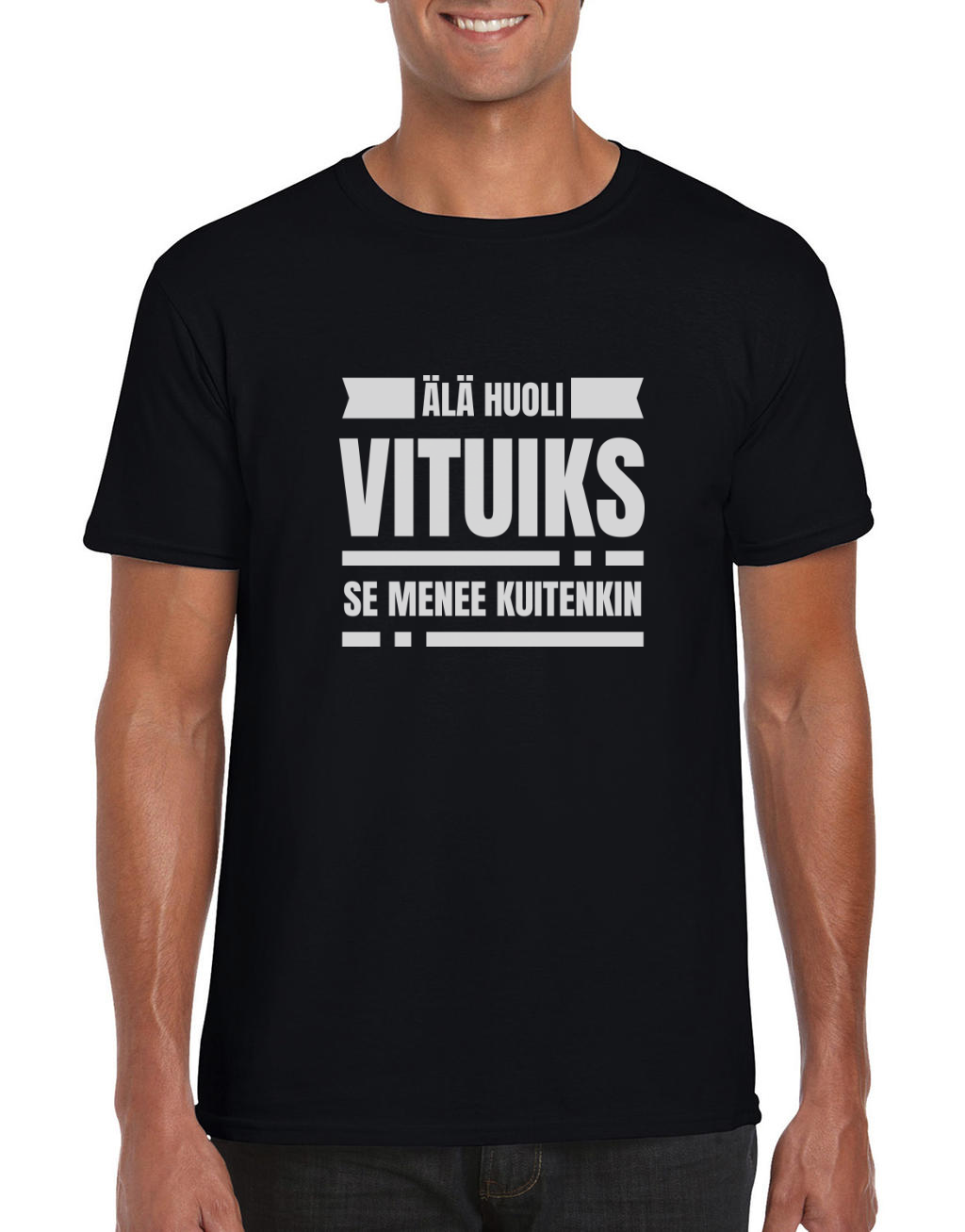 Huumoripaita Älä huoli vituiks se menee kuitenkin – T-paita