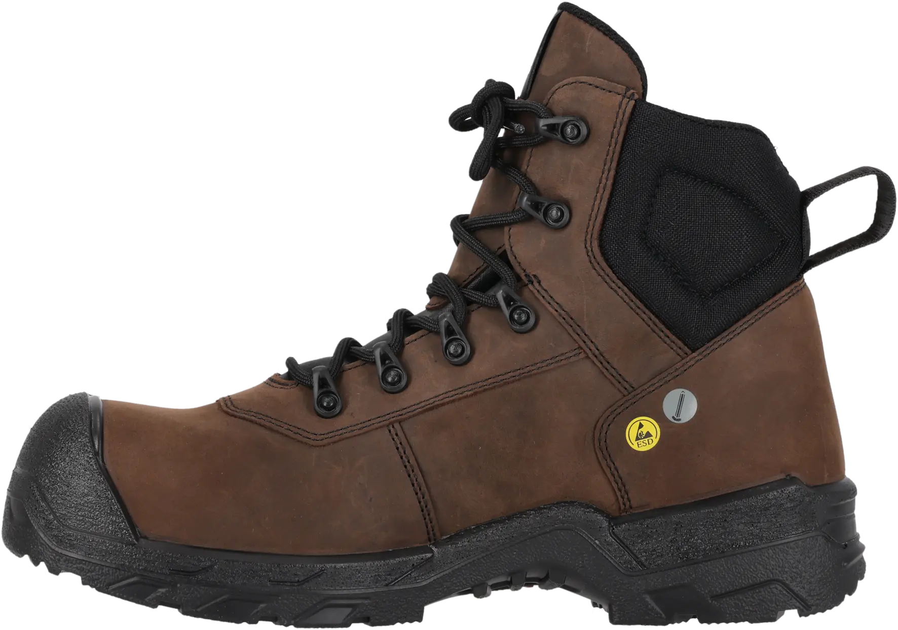 Metalliton turvasaapas, jossa on ruskea hengittävä nupukkipäällinen, ja joka on suunniteltu raskaisiin työympäristöihin. Poron® XRD® -pohjallinen tarjoaa kerroksellista mukavuutta ja vaimentaa jopa 90 % iskuenergiasta. Tässä saappaassa on komposiittivarvassuoja ja pehmeä naulaanastumissuoja, ja siinä yhdistyvät kestävyys, mukavuus ja turvallisuus. PU-/nitriiliulkopohja takaa pidon vaativissa olosuhteissa.