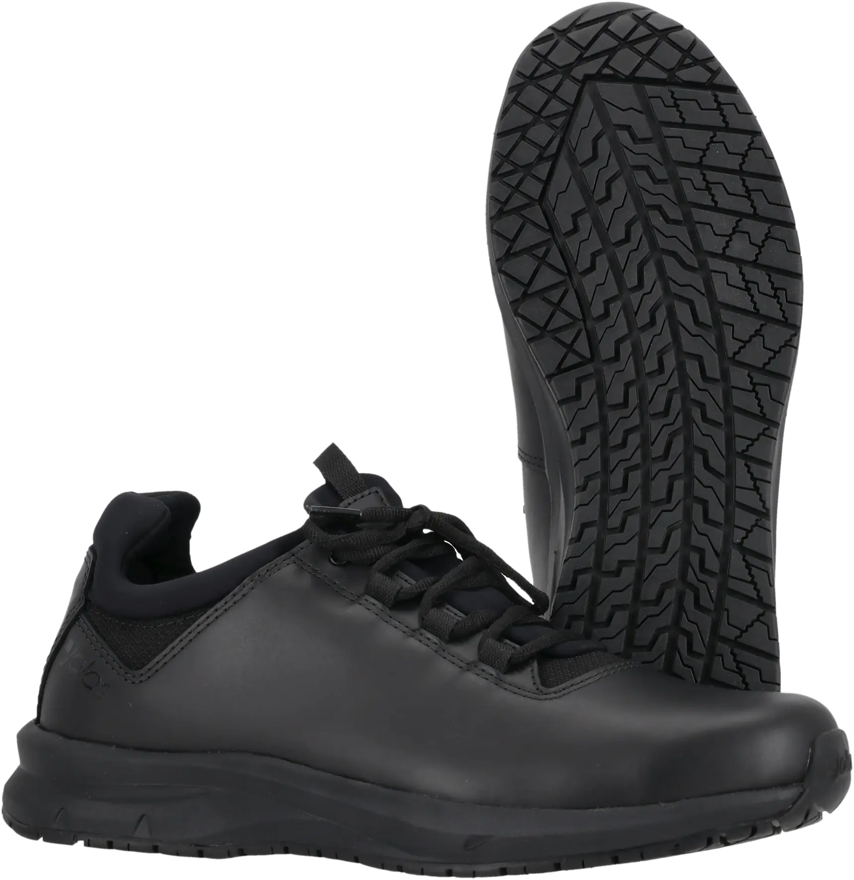 Kevyt työjalkine, joka on suunniteltu virkapukuiselle henkilöstölle, joka tarvitsee mukavuutta, vakautta ja tyyliä – sopii hyvin sekä housujen että hameiden kanssa. Sukkamainen rakenne helpottaa pukemista, ja vettä hylkivän nahkapäällisen pintanahka on peräisin LWG-sertifioiduilta nahkatehtailta. Nitriilikumista valmistettu ulkopohja takaa erinomaisen pidon, kun taas monikerroksinen sisäpohja, jossa on Poron® XRD® -materiaalia ja 50-prosenttisesti biopohjainen EVA-välipohja, tarjoaa erinomaisen iskunvaimennuksen.