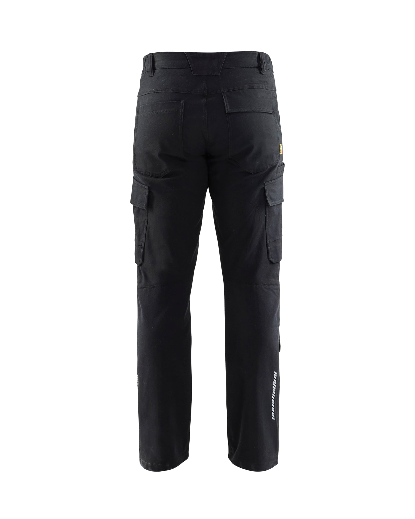 Nämä teollisuuspesua kestävät, naarmuuntumattomat ja polvisuojataskulliset Blåkläder stretch housut ovat valmistettu mukavasta, kahteen suuntaan joustavasta puuvillamateriaalista. Joustava vyötärö lisää mukavuutta. Housuissa on heijastavia yksityiskohtia.