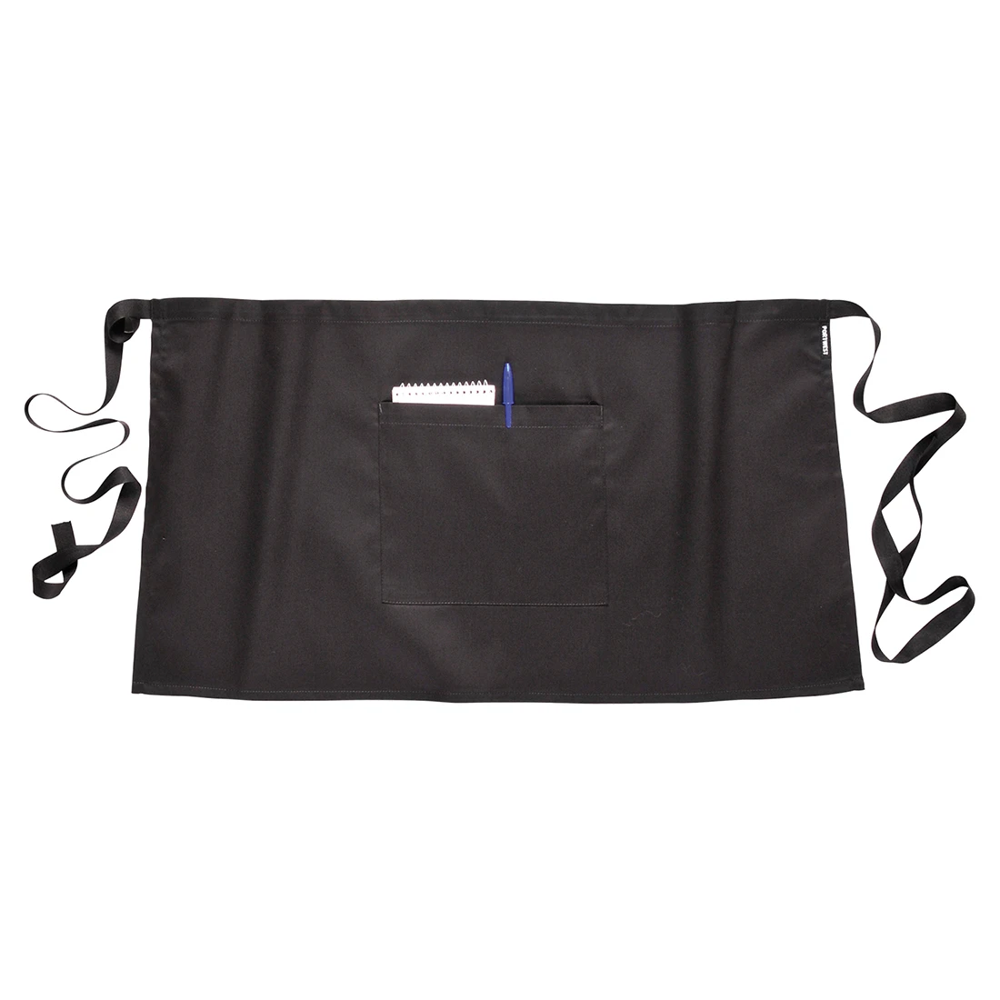 Pieni baariesiliina palvelutehtäviin, kun ei vaadita koko kehon peittävyyttä. Esiliinassa on yksi tilava tasku. Valmistettu laadukkaasta Kingsmill-kankaasta ja ominaisuuksiin kuuluu sotkeutumattomat hihnat 72cm x 38cm.