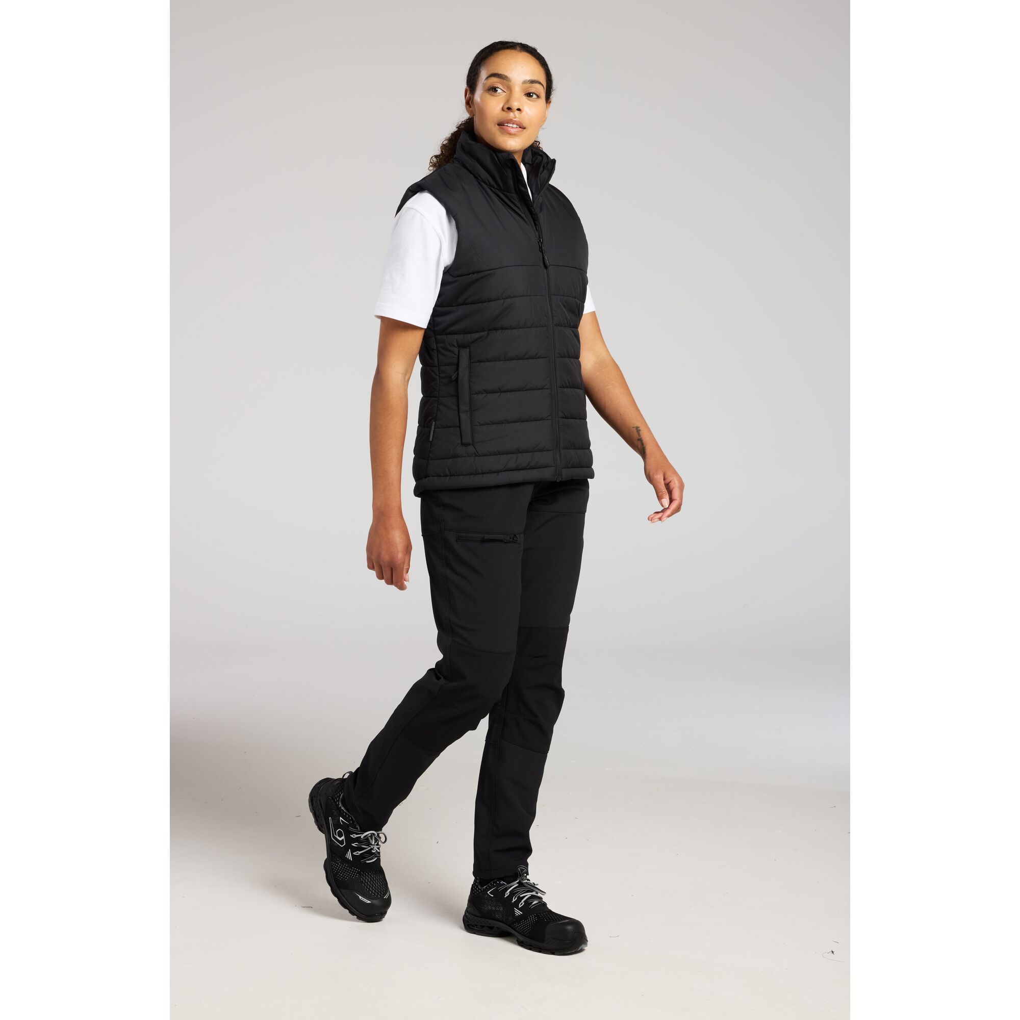 Tyylikäs, pehmustettu ja vuorellinen naisten kevyttoppaliivi, johon on huomioitu paikat yrityksen logojen merkitsemiselle. Veden kestävä käsittely pitää sinut kuivana kevyellä sateella.