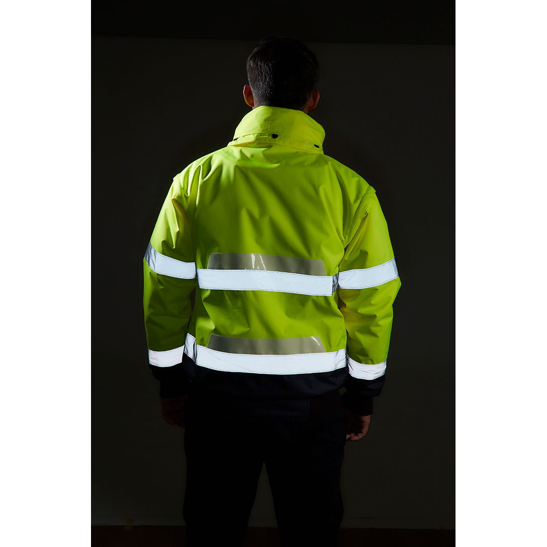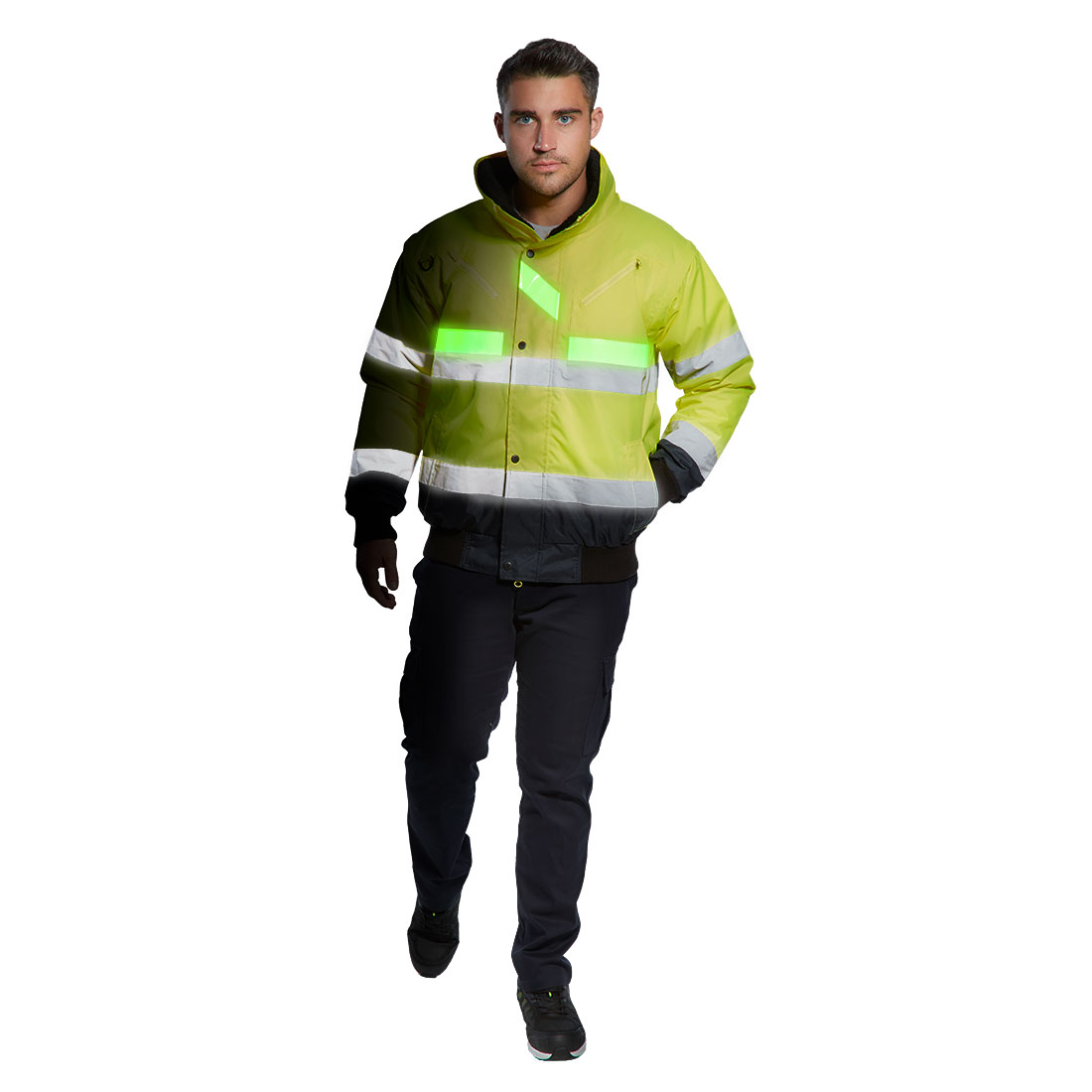 3-1 bomber takki, jossa on Glowtex- sekä perinteiset heijastinnauhat. Glowtex imee itseensä luonnon- ja keinovaloa sekä heijastaa pimeässä ilman erillistä valonlähdettä. Takissa on irrotettavat vuori ja hihat.
