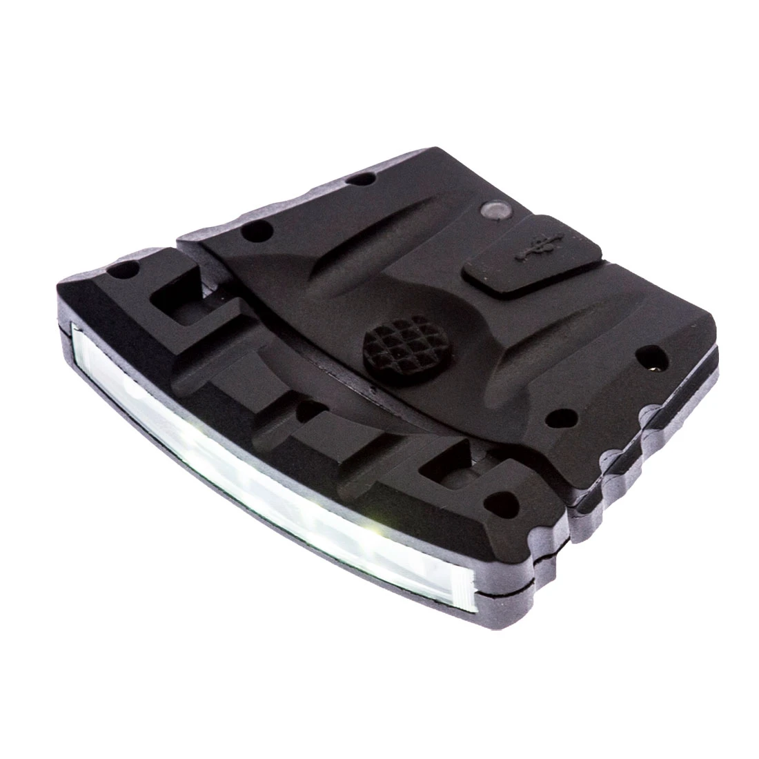 Tämä USB-ladattava LED-valo on tehokas ja suunnattava. Se voidaan helposti kiinnittää esim kolhulippiksen tai kypärän reunan ja se ei paina liikaa eikä estä näkymää. IPX4 tason suojaus vedeltä ja roiskeilta.