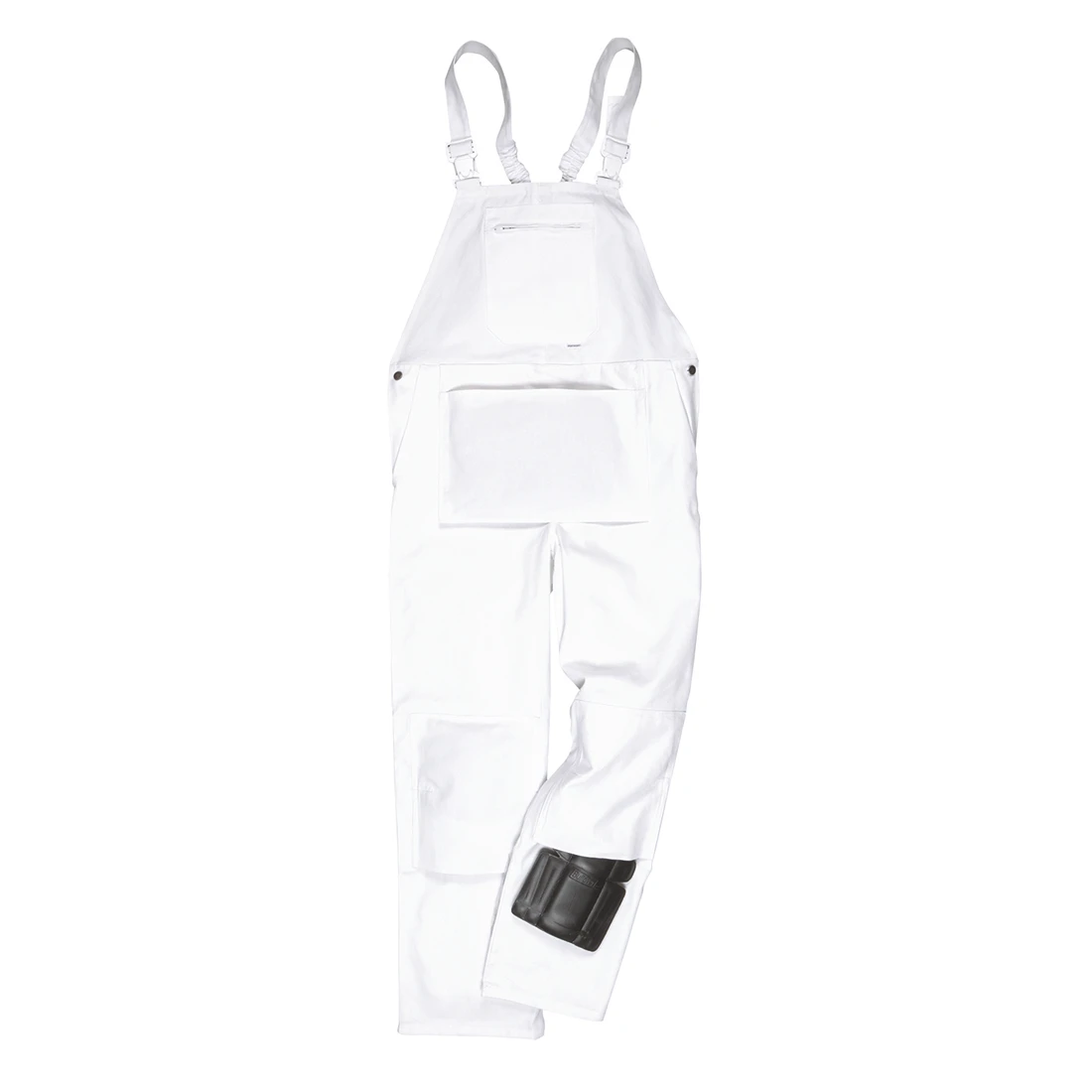 Esikutistetusta 100% puuvillasta valmistetut maalarin lappuhaalarit täyttävät kaikki työntekijän vaatimukset ja suojaavat maaliroiskeilta Tämän käytännöllisen mallin ominaisuuksia ovat vetoketjullinen ruokalapputasku, yksi suuri etutasku, polvisuoja, lantio- ja mittatikkutaskut, joustava selkäosa ja muoviset ruostumattomat soljet.