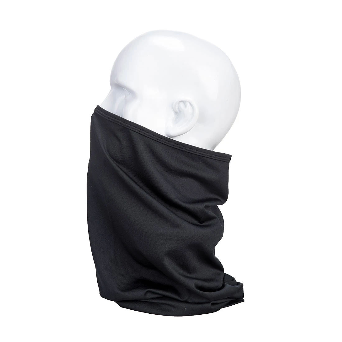 Elastisesta polyesteri-kankaasta valmistettu huivi sopii hyvin erikokoisille käyttäjille ja muotoutuu käyttötarkoituksensa mukaan palautuen aina alkuperäiseen muotoonsa.