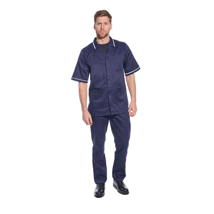 Terveydenhuollon tunika on valmistettu korkealuokkaisesta Kingsmill kankaasta. Taittokaulus, piilotettu ketjulista edessä, saksitasku ja kaksi paikkataskua. Polyesteripuuvilla kangas kestää hyvin pesua.