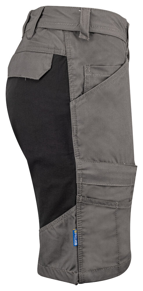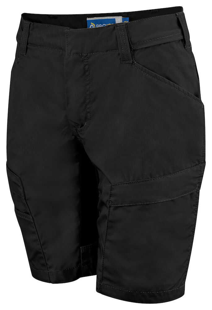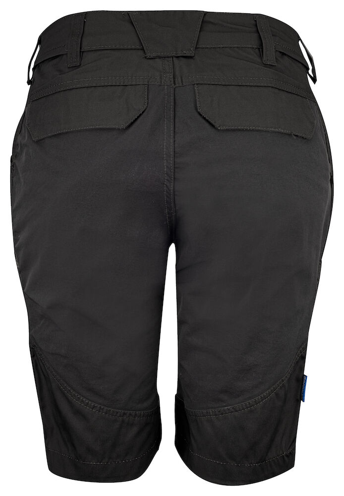 Shortsit hyvällä joustavuudella. Joustavaa kangasta takapuolessa ja haaroissa. Vetoketjulliset reisitaskut, vasemmalla puolella puhelintasku ja oikeassa sivutaskussa sisälenkki henkilökorttia varten. Takana leveämpi vyölenkki, joka estää vyön painamisen. Takataskut, joissa läppä ja tarrakiinnitys. Paikat riipputaskuille (tuotenro 9042). Edessä piilonappi.