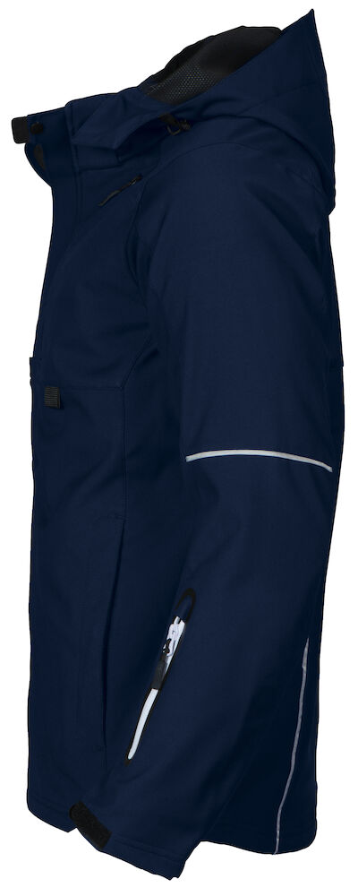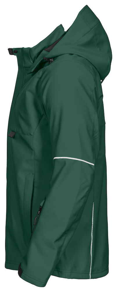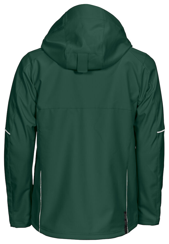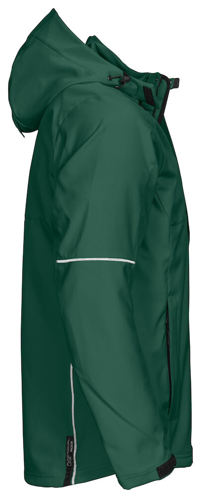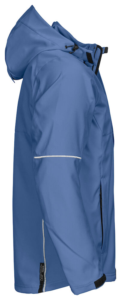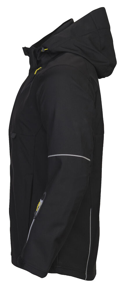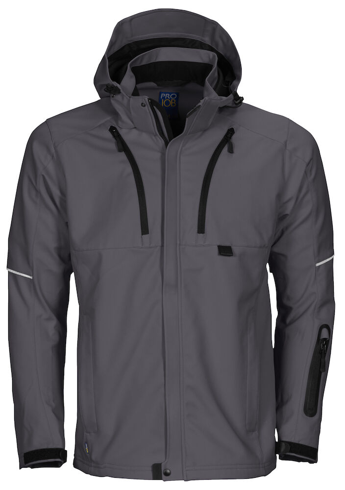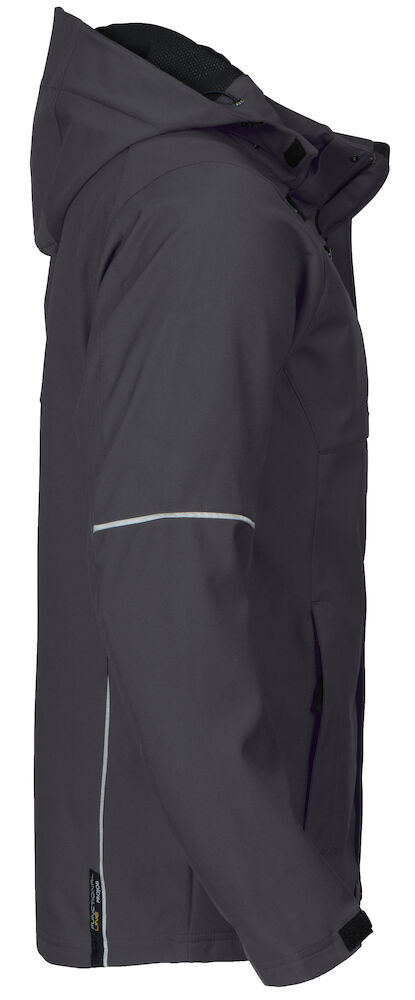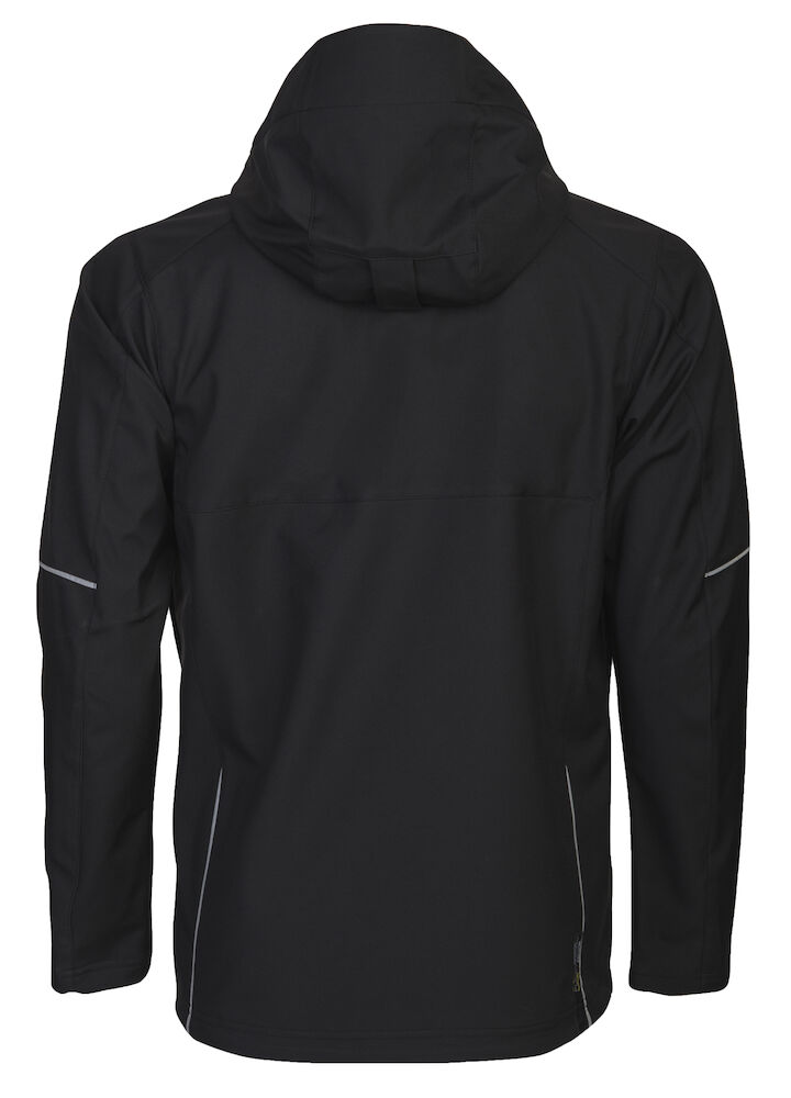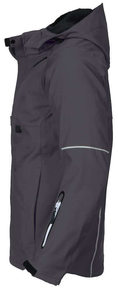 Tekninen sofshell-takki, joka suojaa tuulta ja vettä vastaan. Sivuilla kaksi ja rinnassa vetoketjullista taskua, joissa paikkoja puhelimelle, pienille työkaluille ja avaimille. Paikka ID-kortille. Lisätasku vasemmassa hihassa. Ilmanvaihtoa parantavat vetoketjut kainaloissa ja säädettävät hihansuut ja helma. Pidennetty selkäosa ja mukava fleece-sisävuori. Säädettävissä ja irroitettavissa oleva huppu.