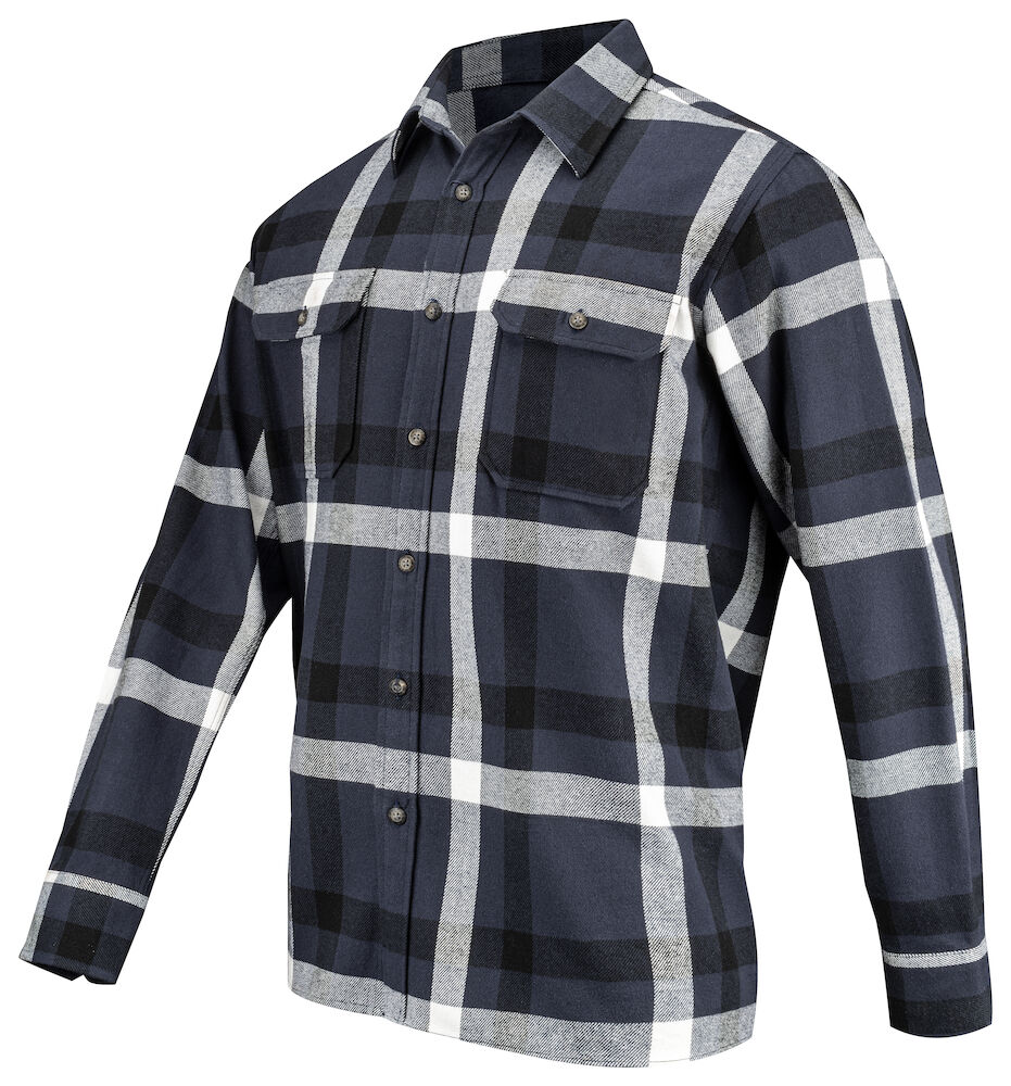 Flanellipaita, jossa kaksi isoa läpällistä rintataskua. Säädettävät hihansuut kahdella napilla.