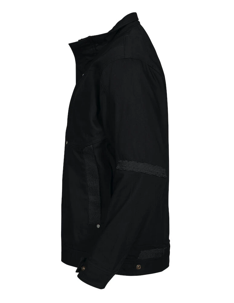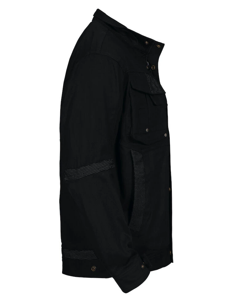 Kovaa kulutusta kestävä canvas-takki. Kaksi rintataskua; oikeassa taskussa paikat puhelimelle, kynille ja kiinnitys ID-kortille; vasemmassa taskussa vetoketju. Vetoketju kauluksen yläosaan saakka. Viistot etutaskut. Säädettävä vyötärö ja hihansuut. Muotoillut hihat. Sisätaskuissa paikka papereille. Cordura-yksityiskohdissa heijastimet.