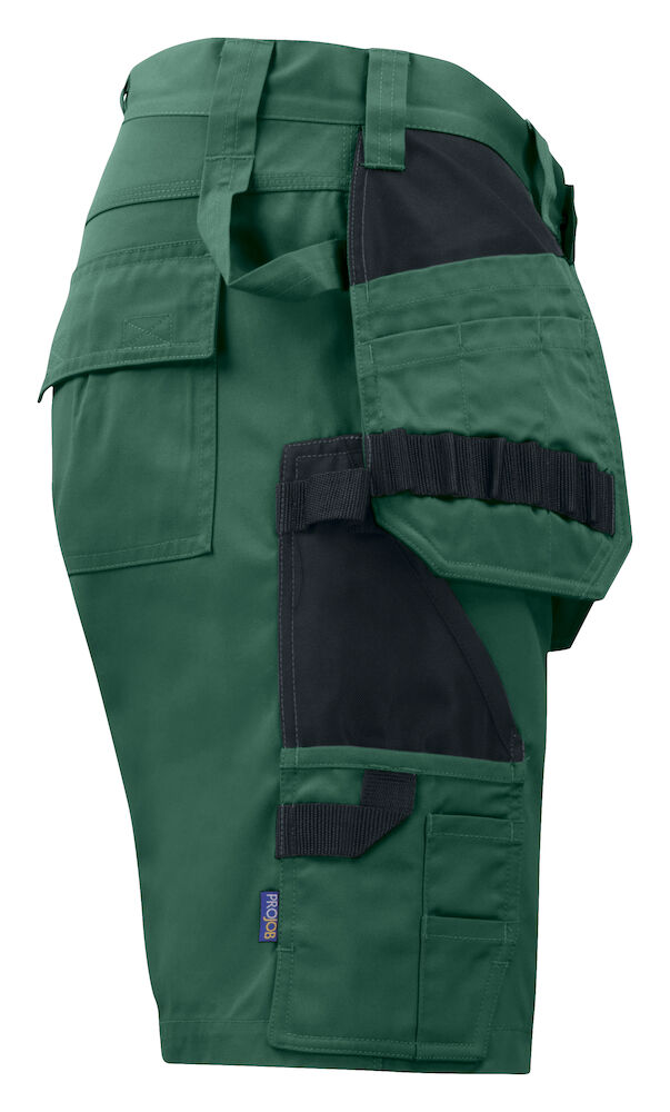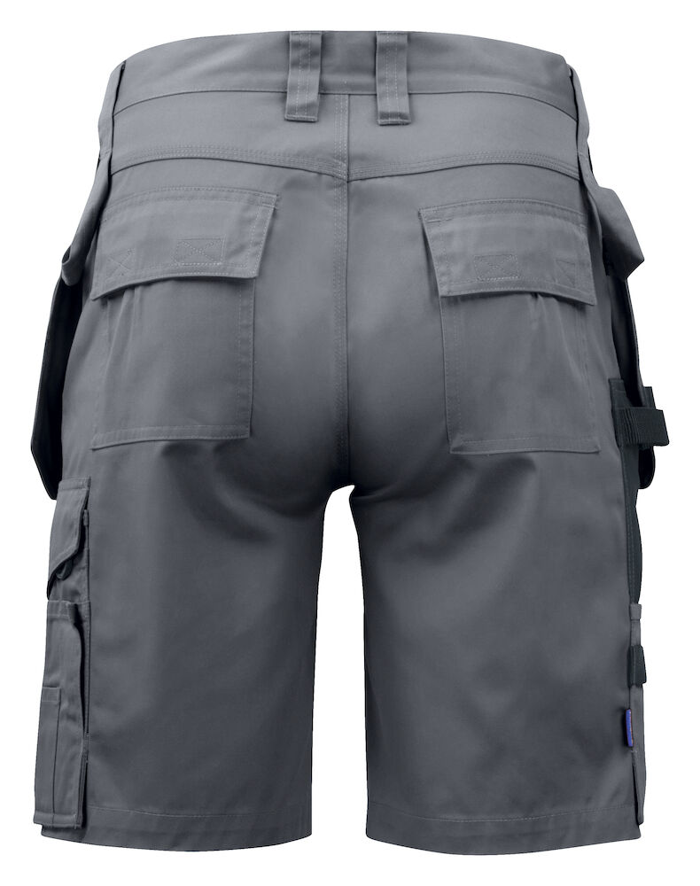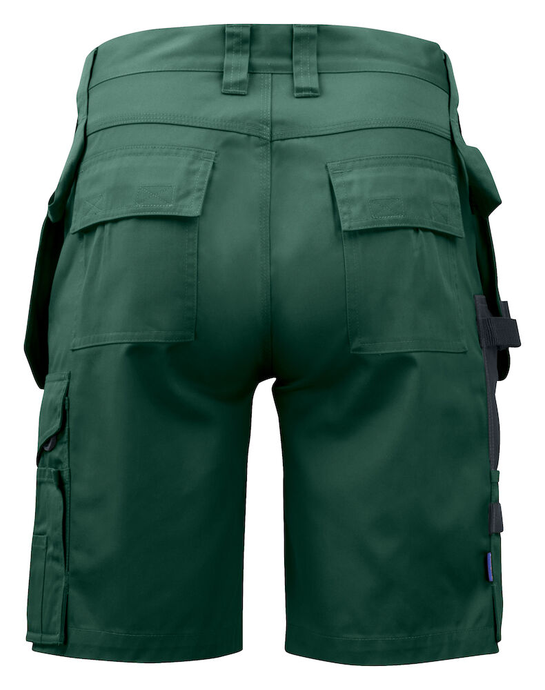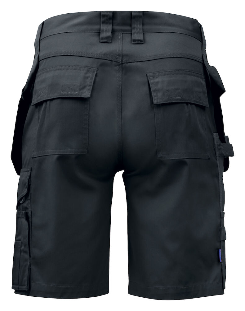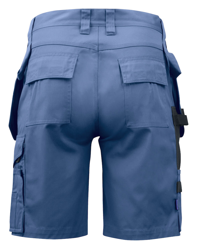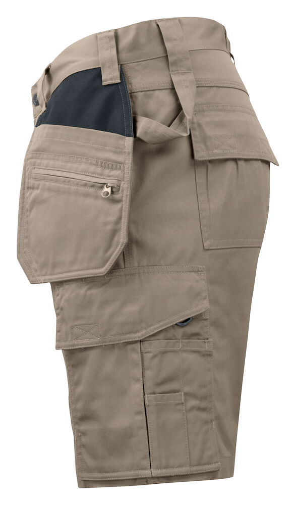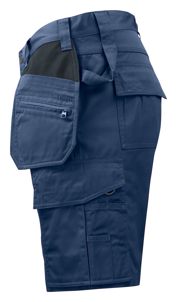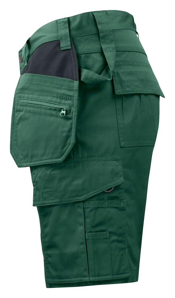 Helppohoitoisesta polyesteri-puuvillasekoitteesta valmistetut työshortsit, jotka säilyttävät muotonsa ja värinsä. Riipputaskut, joissa lisätasku ja vetoketjullinen tasku. Läpälliset takataskut, joissa tarrakiinnitys. Mittatasku, jossa puukkonappi. Polvisuojat voidaan säätää kahdelle eri korkeudelle. Vahvikkeet riipputaskuissa ja mittataskussa.