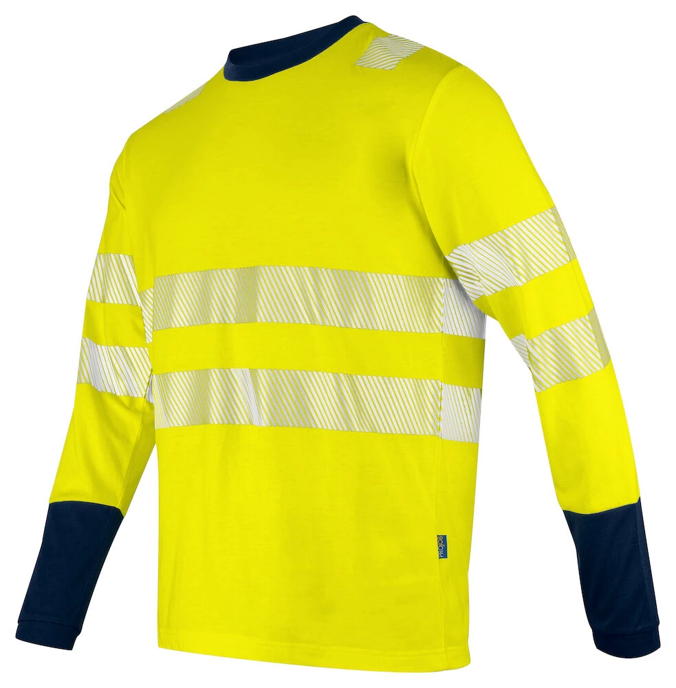 Erittäin mukava pitkähihainen T-paita polyesterin ja puuvillan sekoitteesta. Kontrastiväri hihansuissa suojaa lialta. Paidassa on 3M-heijastimet.