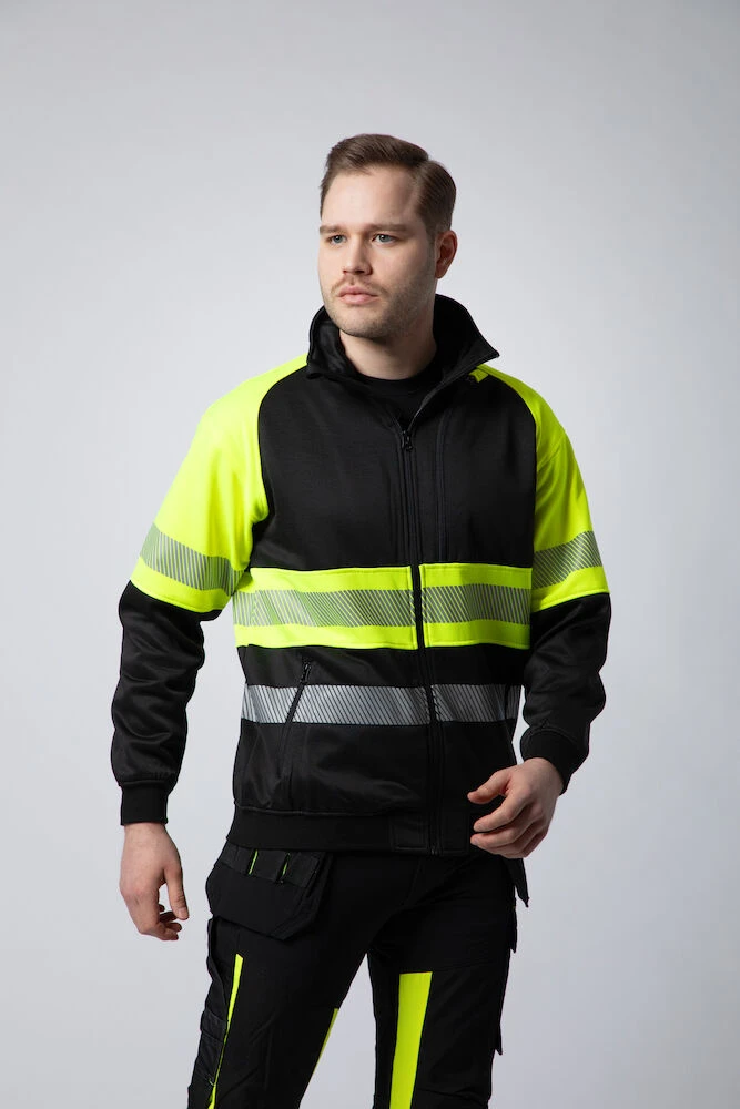 Huomiopaita, jossa kokopitkä vetoketju kauluksen reunaan asti ja vetoketjulliset sivutaskut. Hengittävät ja joustavat heijastimet. Hihansuut ja helma joustinneulosta. Korkean kauluksen ansiosta erityisen mukava päällä.