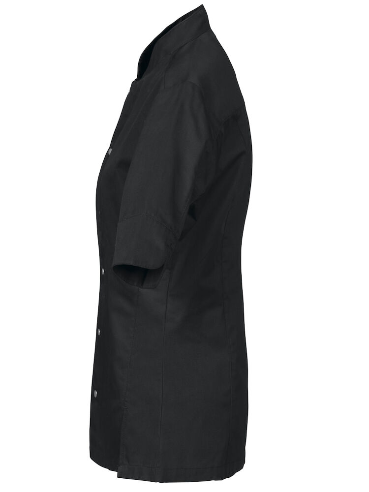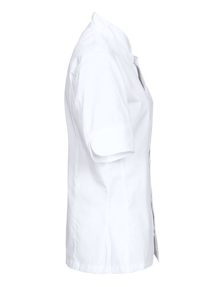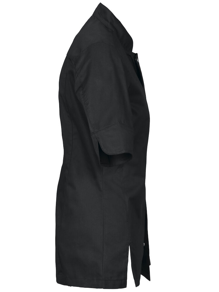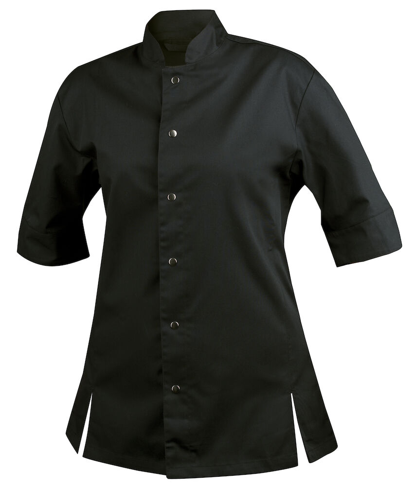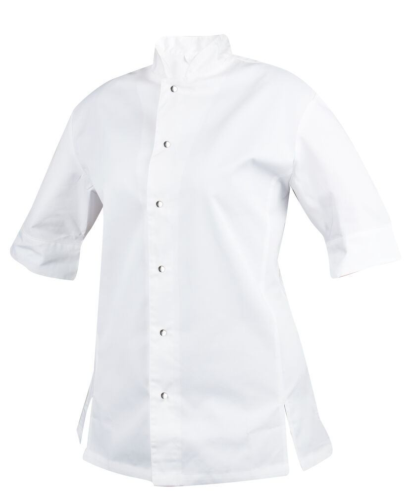 Hyvin istuva tyylikäs kokkitakki. Pesu 85 asteessa.