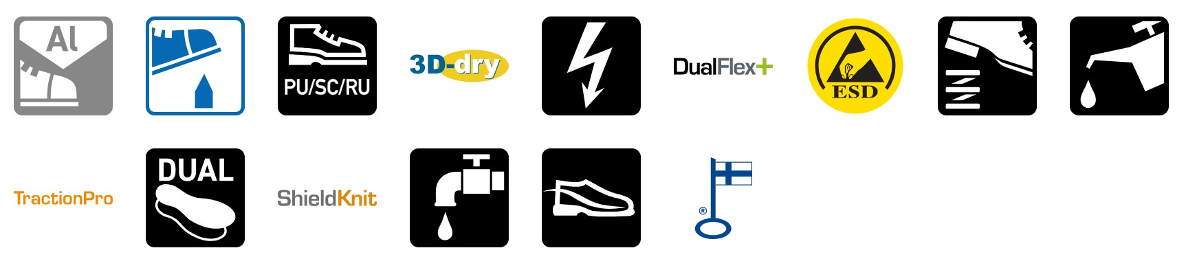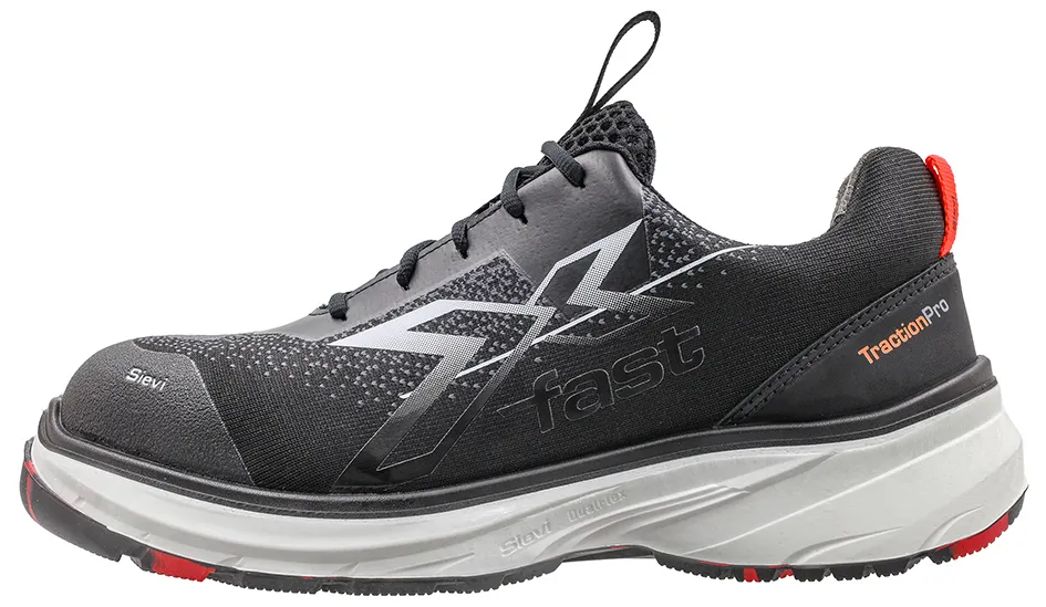 Sievin uuden sukupolven Sievi FASTX DFLEX -turvakengän erittäin kevyt ja koko pituudeltaan joustava pohja muodostuu Sievi DualFlex+® -joustovälipohjasta, TractionPro®-kitkapohjasta ja jalkineeseen vakautta tuovasta, johtavasta polyuretaanikerroksesta. ShieldKnit®-päällismateriaali on erittäin hengittävä ja vahva, tekninen materiaali. Neuloksessa on 60 % kierrätettyä materiaalia.