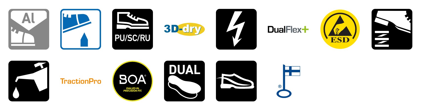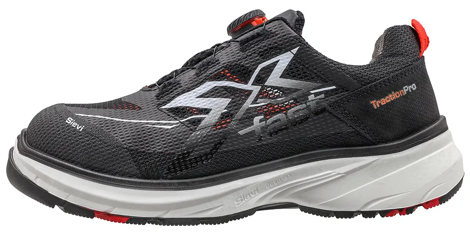Sievin uuden sukupolven Sievi FASTX FREE DFLEX Roller -turvasandaalin erittäin kevyt ja koko pituudeltaan joustava pohja muodostuu Sievi DualFlex+® -joustovälipohjasta, TractionPro®-kitkapohjasta ja jalkineeseen vakautta tuovasta, johtavasta polyuretaanikerroksesta. Kengässä on uusi, mikrosäädettävä BOA® Fit System Li2 -mekanismi, jonka eteen-taakse-toiminnolla jalkineen voi säätää tarkasti jalkaan sopivaksi.