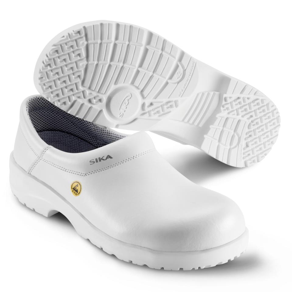 SIKA Fusion -klompit yhdistävät keveyden, mukavuuden ja kestävyyden. Hengittävä ja vettä hylkivä Permair®-nahka yhdessä liukastumista estävän ja iskuja vaimentavan PU-ulkopohjan kanssa tarjoaa turvallisen ja vakaan askeleen. Vaihdettava antibakteerinen pohjallinen pitää jalat kuivina ja hajuttomina. Vuori kuivuu nopeasti ja imee hikeä. ESD-hyväksytty ja unisex-malli, täydellinen elintarvike- ja terveysalalle.