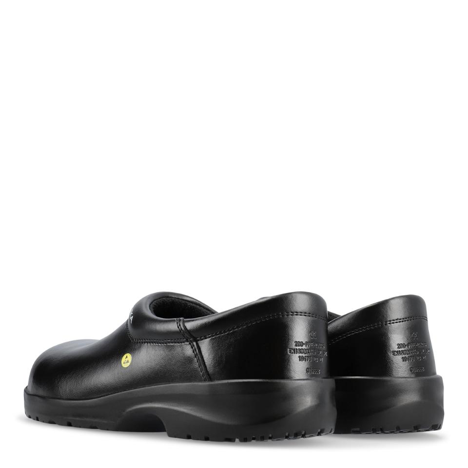Kevyt ja mukava klompi, valmistettu hengittävästä, vettä hylkivästä ja kestävästä Permair®-nahasta. Erityisen liukastumisen estävä ja iskuja vaimentava ulkopohja. Pohjan muotoilu takaa vakaan askeleen ja minimoi nyrjähdysriskin. Vaihdettava pohjallinen on valmistettu hengittävästä, kosteutta siirtävästä ja antibakteerisesta materiaalista, pestävissä 30 °C:ssa. Vuori on valmistettu hikeä imevästä, hengittävästä, kestävästä ja nopeasti kuivuvasta Politexistä. Saatavana mustana ja valkoisena. ESD-hyväksytty.
