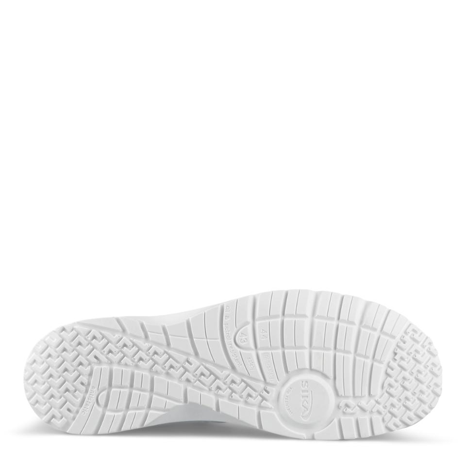 SIKA Fusiono -kenkä yhdistää keveyden, mukavuuden ja turvallisuuden. Hengittävä ja kestävä Permair®-nahka sekä antibakteerinen, kosteutta siirtävä sisäpohja takaavat pitkän käyttömukavuuden. PU-pohja on liukastumisen estävä ja iskunvaimennettu, mikä vähentää nyrjähdysriskiä. Sopii elintarvike- ja terveysalan ammattilaisille. Unisex-malli, koko 35–48, vain 0,53 kg/kengässä.