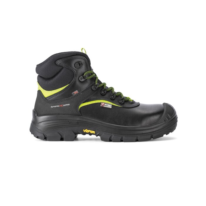 Vedenpitävä ja talvivuorillinen Sixton Eldorado Arctic Turvakenkä on erittäin laadukas nahkakenkä, jossa on nauhat. Vuori aitoa, lämpöä säilyttävää villaa. Komposiittivarvassuoja ja kevlarista valmistettu naulaanastumissuoja ovat kevyet ja täysin joustavat. Tukikisko, joka suojaa jalkaa vääntymiseltä. VIBRAM®-ulkopohja takaa hyvän pidon jäällä ja lumella. Vahvistettu varvasosa pidentää käyttöikää.
