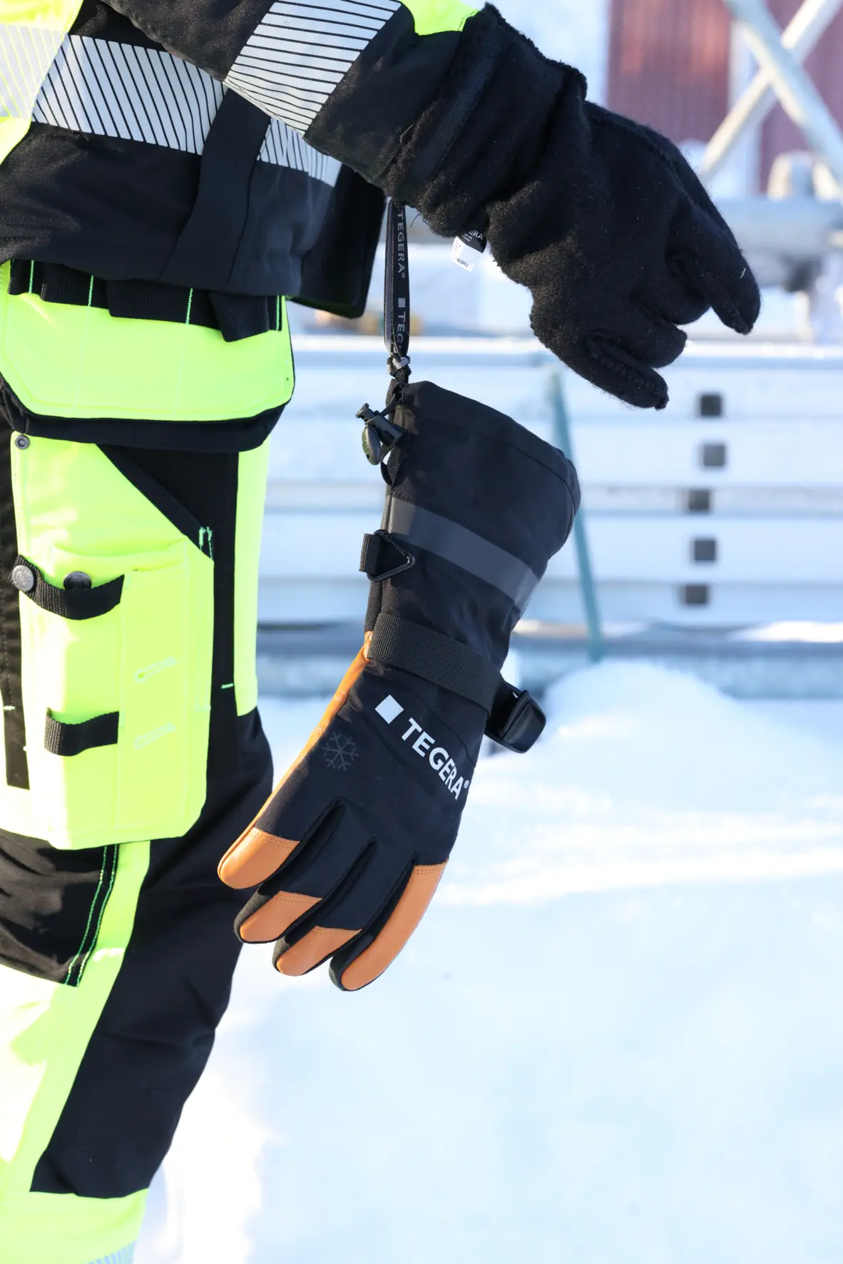 TEGERA® SubZero 6295 -käsineessä on ensiluokkaista naudan pintanahkaa kämmenessä ja kämmenselässä Tegera Water Repellent -tekstiiliä joustavuuden ja kestävyyden takaamiseksi. Käsineessä on irrotettava villavuori, joka tekee siitä helpon kuivata ja puhdistaa. Villa imee kosteutta ja pitää kätesi kuivina ja lämpiminä varmistaen parhaan mahdollisen käyttömukavuuden. Ranneke pitää käsineen paikoillaan ja varmistaa lämmön, ja lumilukko estää lumen pääsyn sisään. Tuulenpitävä ja soveltuu kosketusnäytöille.