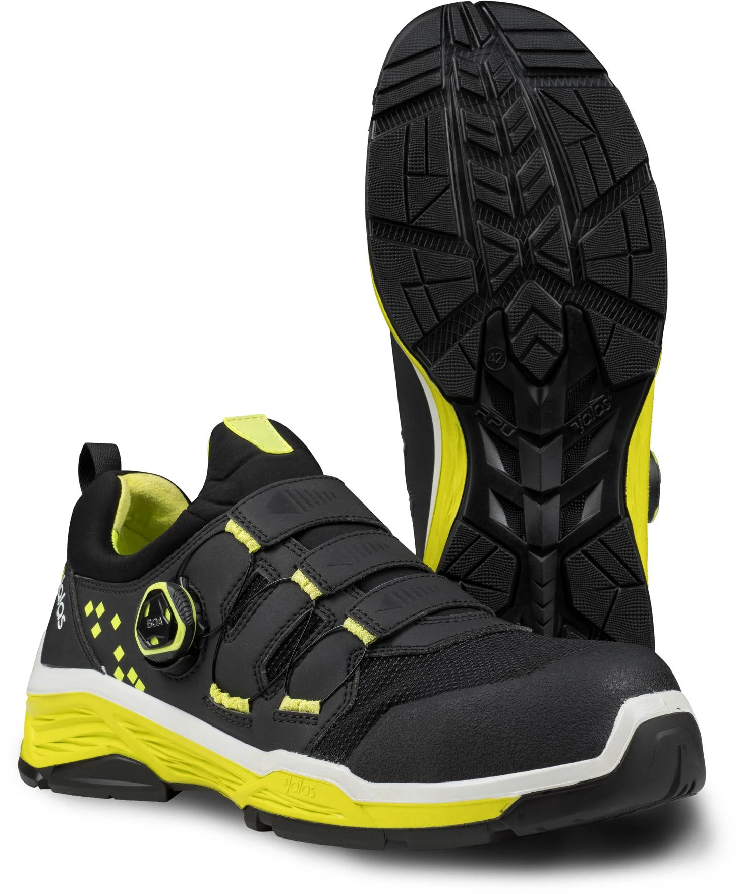 Pehmeä ja vettähylkivä turvajalkine Jalas 2068 TIO, joka tarjoaa tehokasta suojaa. Parasta pehmeyttä ja käyttömukavuutta pehmeän ja vakaan TIO (Three In One) -ulkopohjan ansiosta, joka estää pitkäaikaisten jalka- ja selkävammojen syntymisen. Kolmipaneelinen BOA®-kiinnitysjärjestelmä mahdollistaa pehmeän, täydellisen ja yksilöllisen istuvuuden. Jalkineessa on alumiininen varvassuoja ja pehmeä tekstiilinen naulaanastumissuoja. Uusi Jalas-teknologia, jossa kolme pohjaa yhdessä.