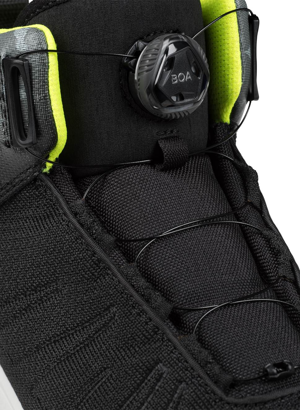 - BOA ®-kiinnitysjärjestelmän avulla voit pukea ja riisua jalkineesi nopeasti ja vaivattomasti. Kireyttä voidaan säätää yhdellä kädellä ja käsineet kädessä.