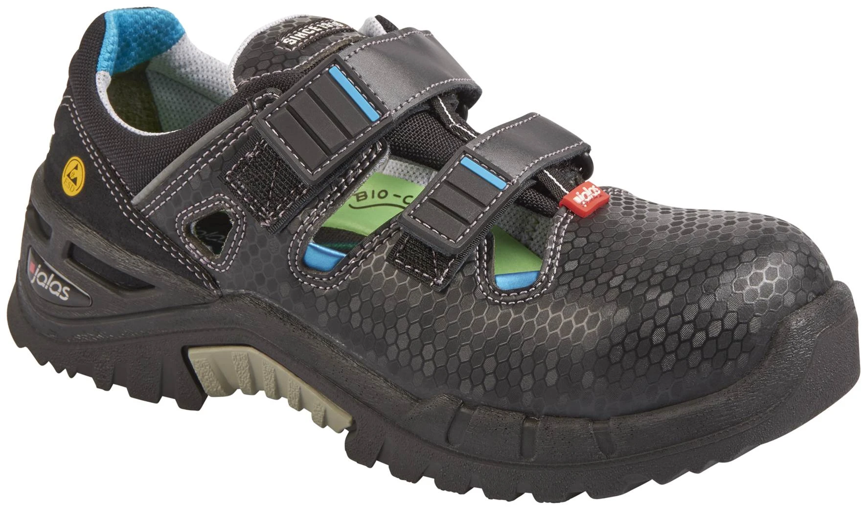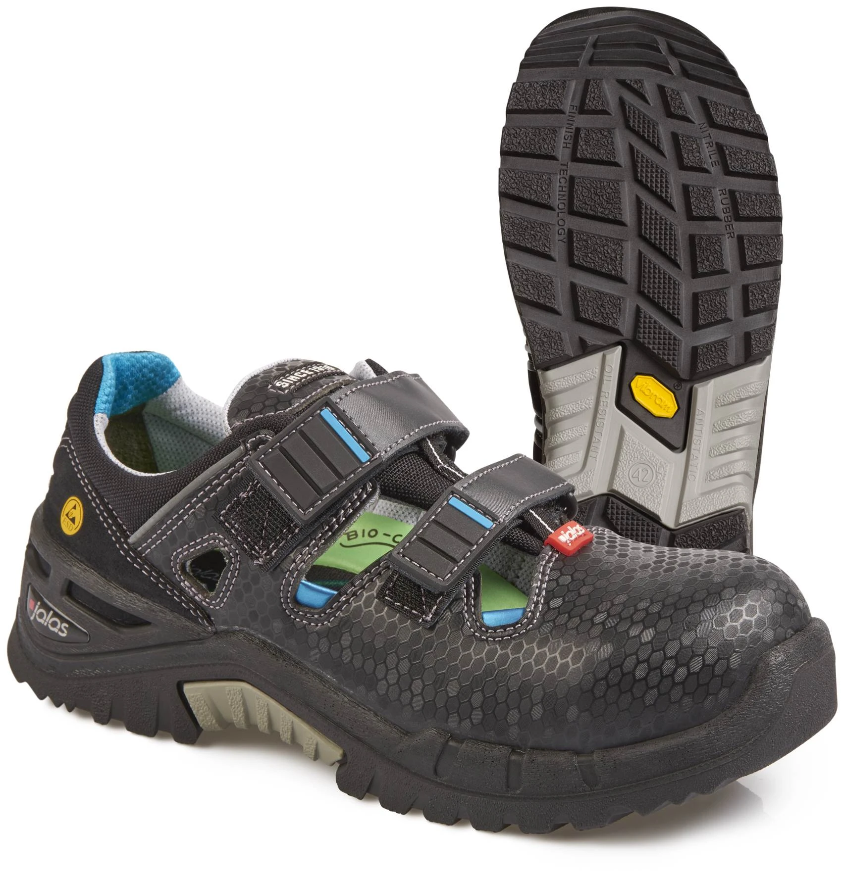 Hengittävä sandaali tarrakiinnityksellä. Kestävä mikrokuitu ja kestävä tekstiili tekevät tästä sandaalista kestävän turvajalkineen. Naulaanastumissuoja plasmakäsiteltyä komposiittimateriaalia (PTC), PU-välipohja, kuminen ulkopohja ja alumiininen varvassuoja. Sopii kuiviin ja puhtaisiin sisätiloihin.